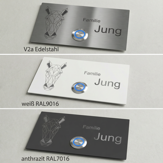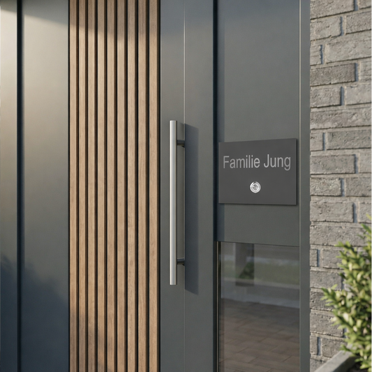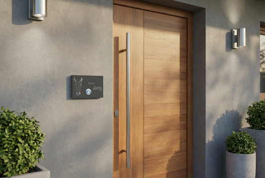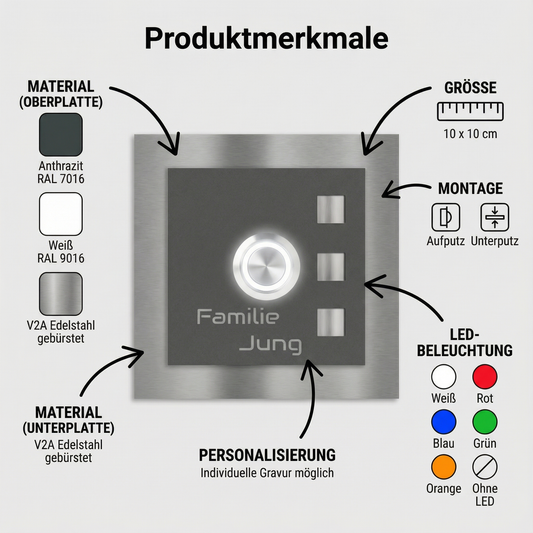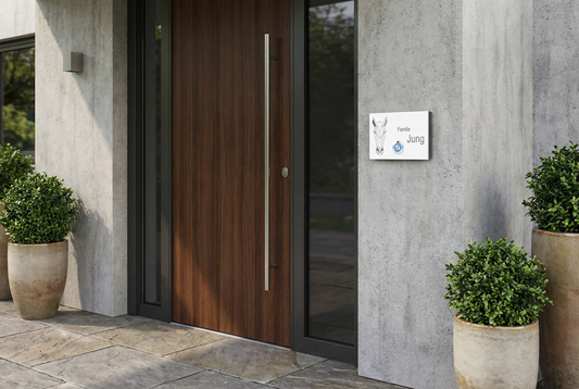 Gestalte deine Türklingel so, wie sie zu deinem Zuhause passt: Name, Motiv oder sogar ein eigenes Bild – direkt im Konfigurator. Gefertigt aus echtem V2A Edelstahl und edlem Acrylglas – robust, wetterfest und langlebig.