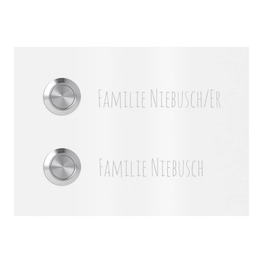 Das detaillierte Ergebnis kann sich sehen lassen – Unser Laser-Verfahren verhindert erosionsbedingte Veränderungen des Schriftzuges, da bei dieser Gravur – im Gegensatz zu herkömmlichen Verfahren – die Oberfläche des Materials nicht bis in die Tiefe beschädigt wird. Bei unseren pulverbeschichteten Türklingeln sind wir in der Lage, dank unserer Lasertechnik, die Pulverbeschichtung präzise abzutragen. Der glänzende Edelstahl Schriftzug kommt zum vorschein. Damit bleibt das Edelstahlblech unempfindlich für Korrosion.