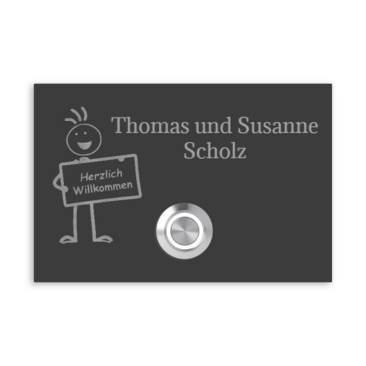 London 12 x 8 cm Edelstahl (V2A) Türklingel - "Männchen" - mit Gravur - Anthrazit / Weiß / Edelstahl - LED Aufputz / Unterputz