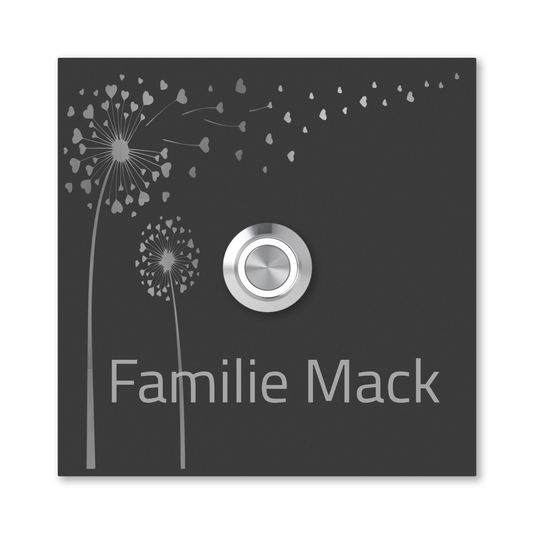Bochum 11 x 11 cm Edelstahl (V2A) Türklingel - mit Gravur - Anthrazit oder Weiß pulverbeschichtet oder Edelstahl gebürstet - LED - Aufputz