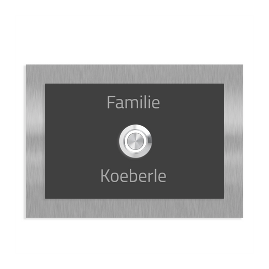 Boston 17 x 12 cm Edelstahl (V2A) Türklingel - mit Gravur - Anthrazit / Weiß / Edelstahl und Edelstahl gebürstet - LED - Aufputz / Unterputz