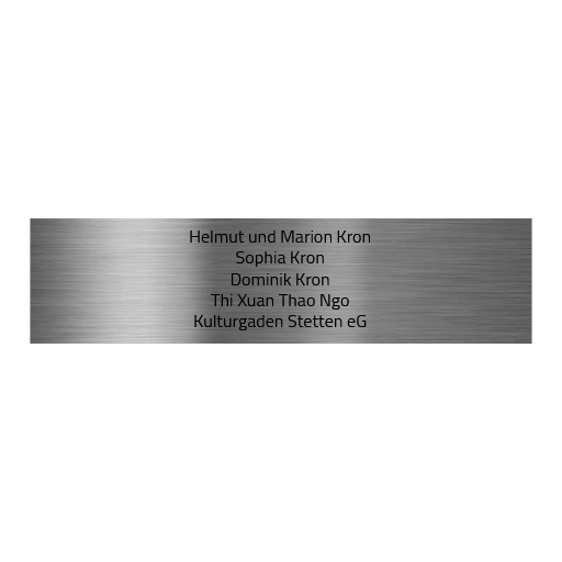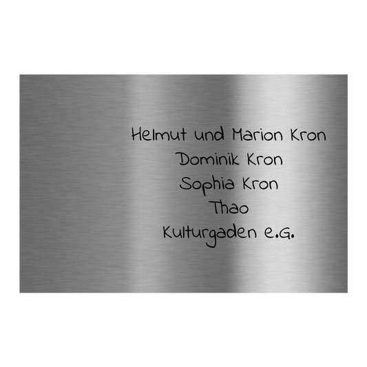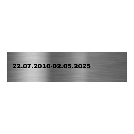 Material sowie Gravur bleiben, auch auf längere Sicht betrachtet, unbeeinflusst von Witterungsbedingungen und korrosionsfrei.