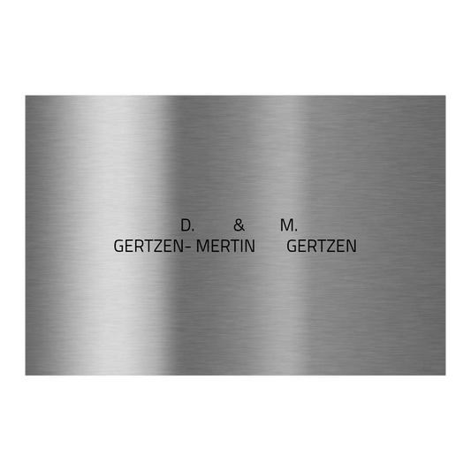Das detaillierte Ergebnis kann sich sehen lassen – Unser Laser-Verfahren verhindert erosionsbedingte Veränderungen des Schriftzuges, da bei dieser Gravur – im Gegensatz zu herkömmlichen Verfahren – die Oberfläche des Materials nicht bis in die Tiefe beschädigt wird. Bei unseren pulverbeschichteten Türklingeln sind wir in der Lage, dank unserer Lasertechnik, die Pulverbeschichtung präzise abzutragen. Der glänzende Edelstahl Schriftzug kommt zum vorschein. Damit bleibt das Edelstahlblech unempfindlich für Korrosion.