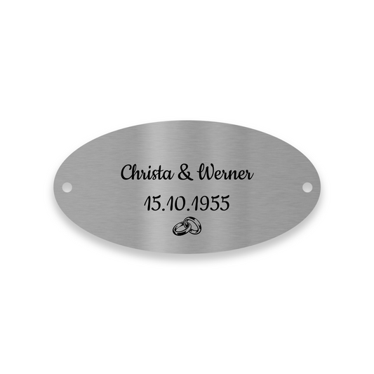 Material sowie Gravur bleiben, auch auf längere Sicht betrachtet, unbeeinflusst von Witterungsbedingungen und korrosionsfrei.