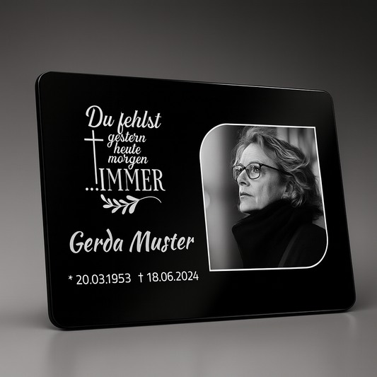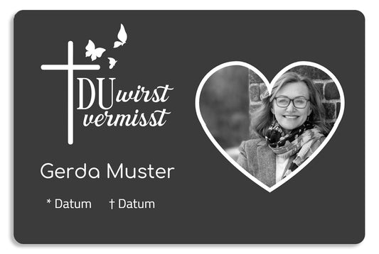 Material sowie Gravur bleiben, auch auf längere Sicht betrachtet, unbeeinflusst von Witterungsbedingungen und korrosionsfrei.