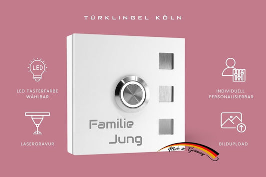 Mit einer Lasergravur von Jung Edelstahl Design wird Ihre Haustürklingel oder Ihr Türschild zu etwas ganz Besonderem.