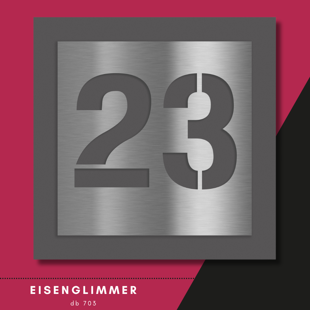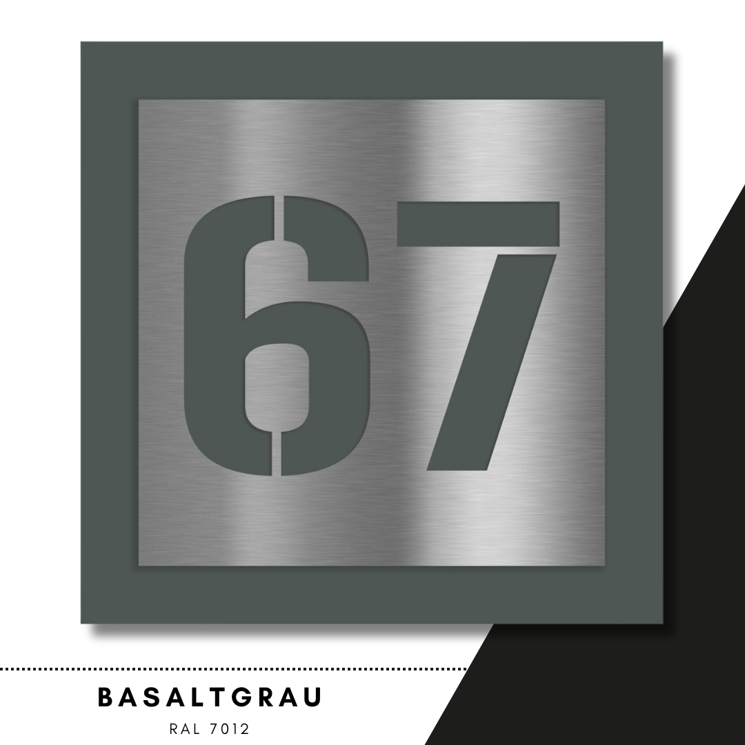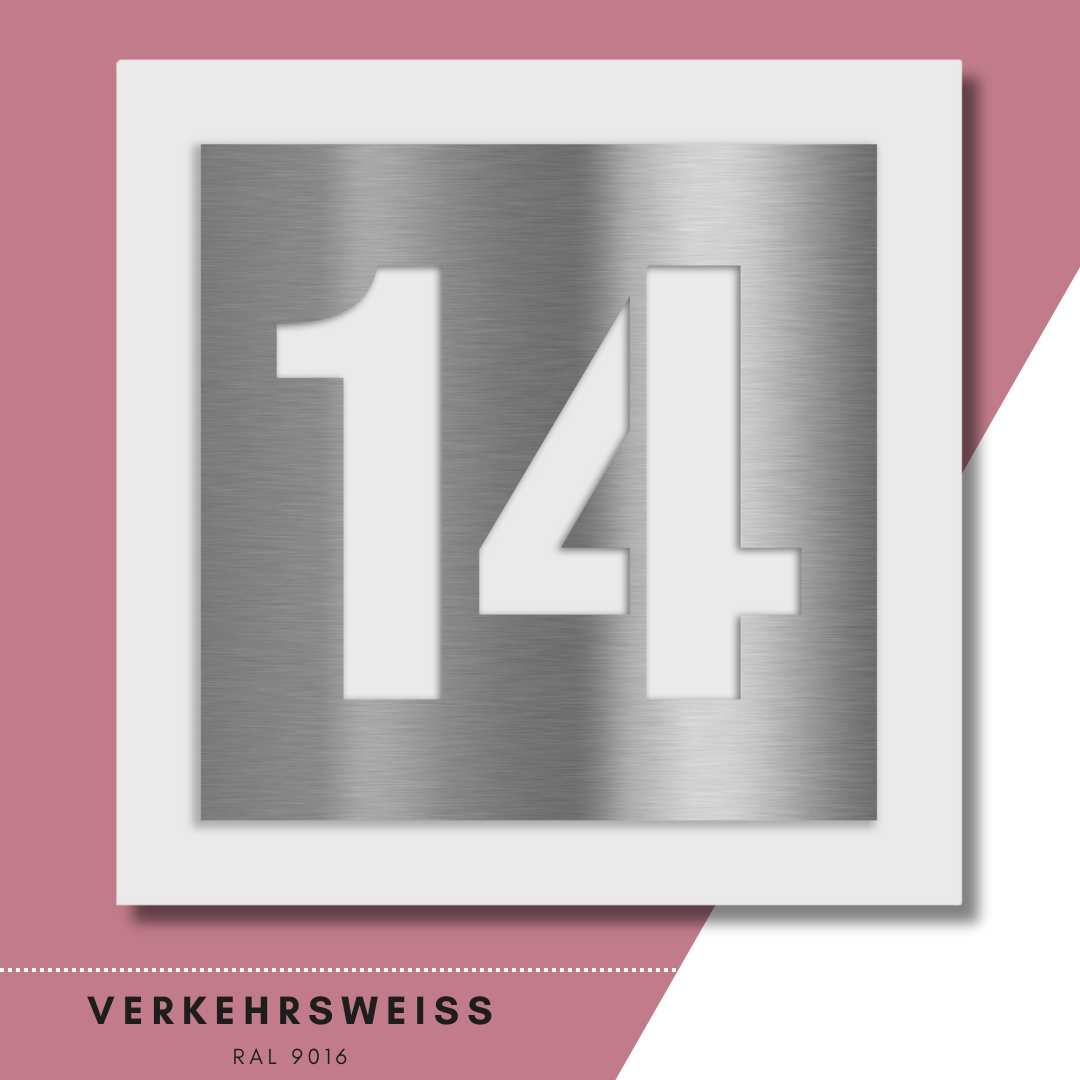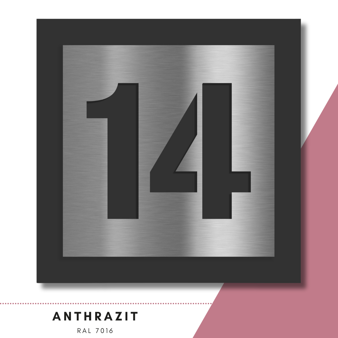 - Ihre Hausnummer wird mit modernen Lasern aus der oberen Edelstahlplatte ausgelasert, so dass die darunterliegende pulverbeschichtete Platte sichtbar wird.