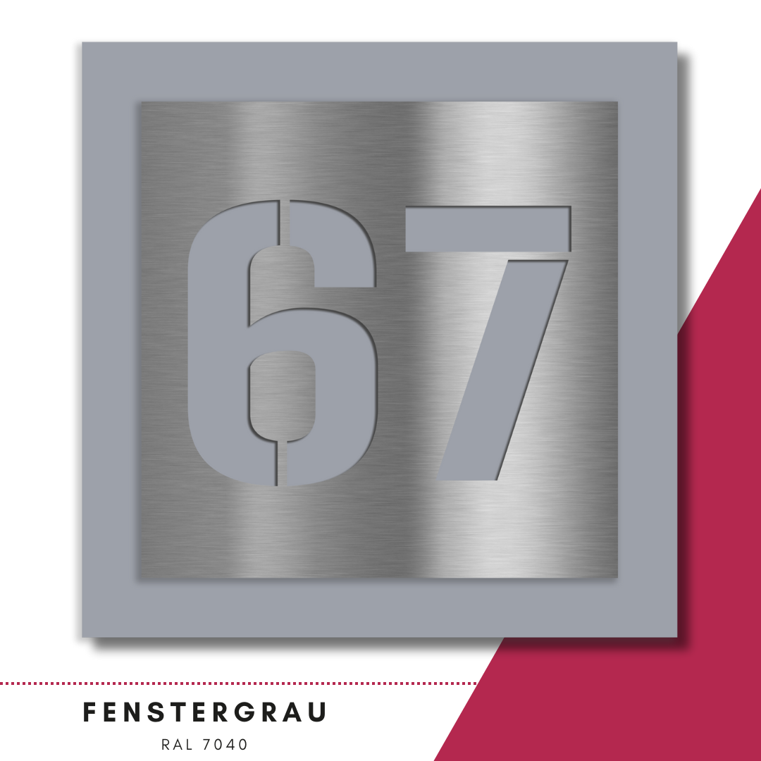 - Das Hausnummernschild besteht aus einer oberen geschliffenen V2a Edelstahlplatte und einer unteren pulverbeschichteten V2a Edelstahlplatte.