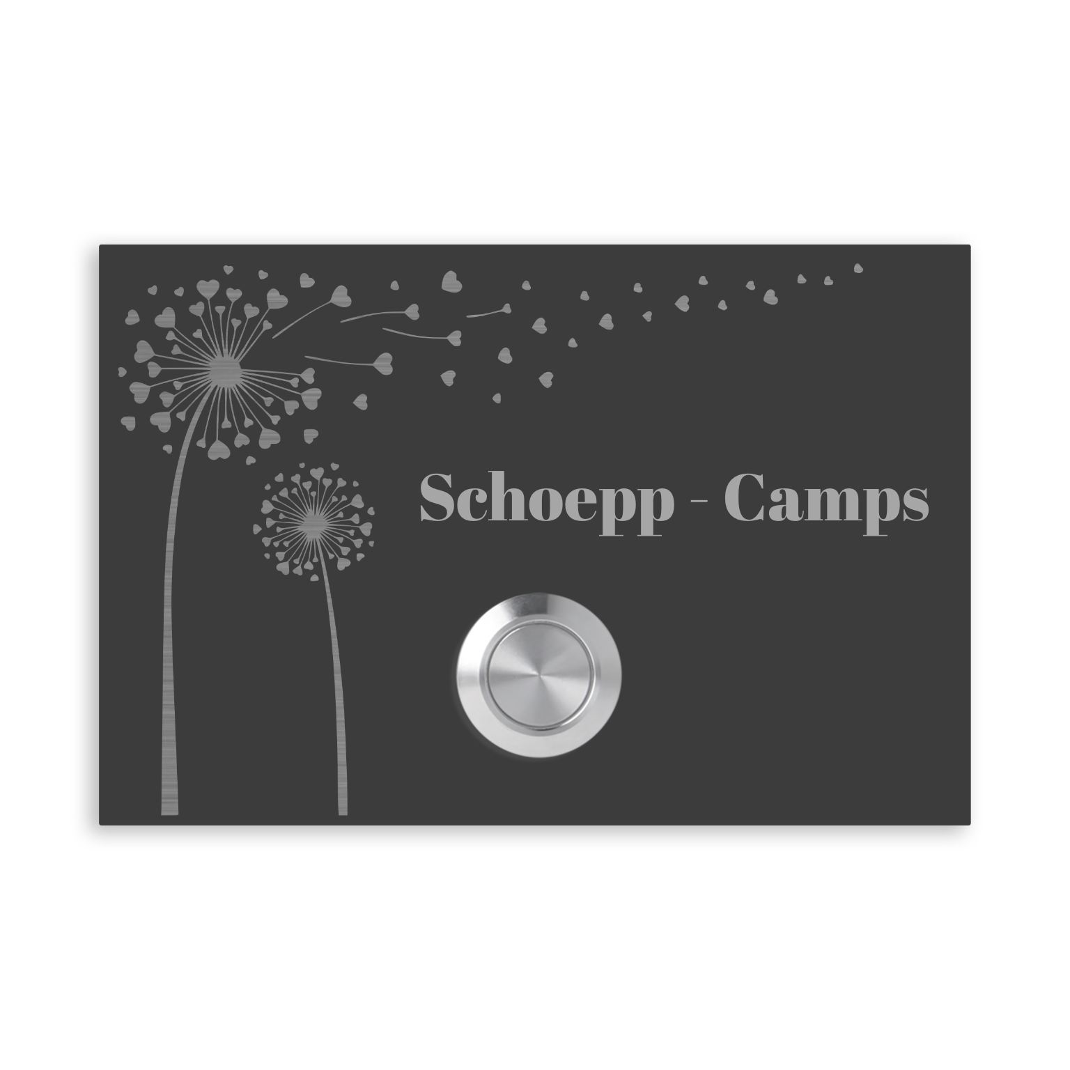 London 12 x 8 cm Edelstahl (V2A) Türklingel - "Pusteblume" - mit Gravur - Anthrazit / Weiß / Edelstahl - LED - Aufputz / Unterputz