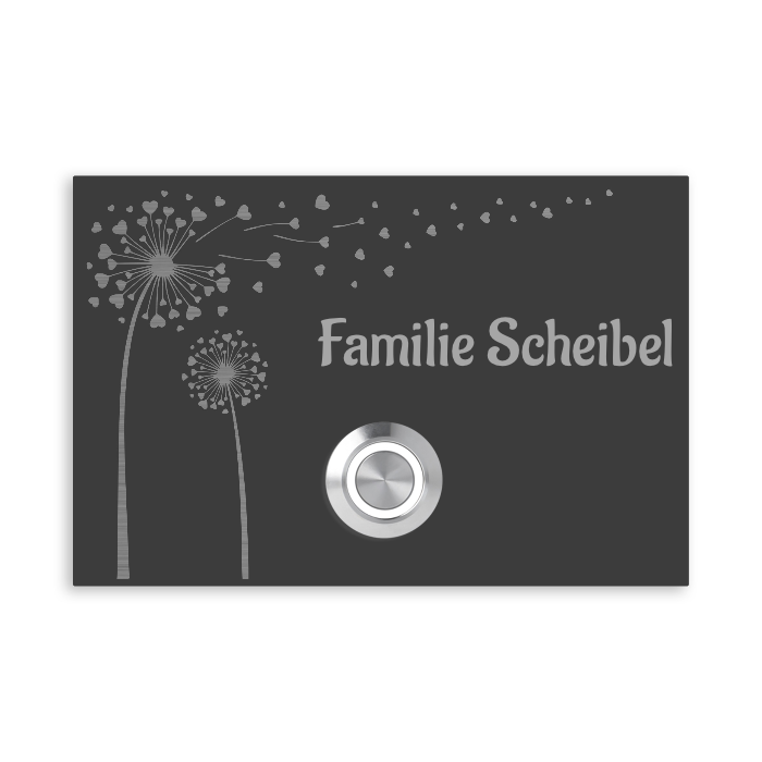 London 12 x 8 cm Edelstahl (V2A) Türklingel - "Pusteblume" - mit Gravur - Anthrazit / Weiß / Edelstahl - LED - Aufputz / Unterputz