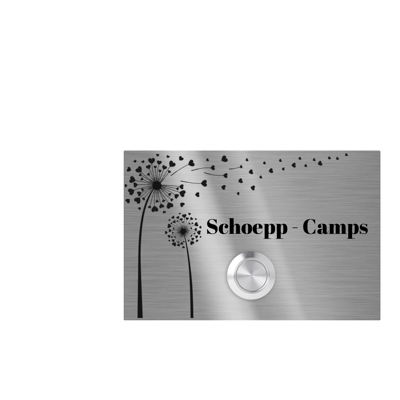 London 12 x 8 cm Edelstahl (V2A) Türklingel - "Pusteblume" - mit Gravur - Anthrazit / Weiß / Edelstahl - LED - Aufputz / Unterputz