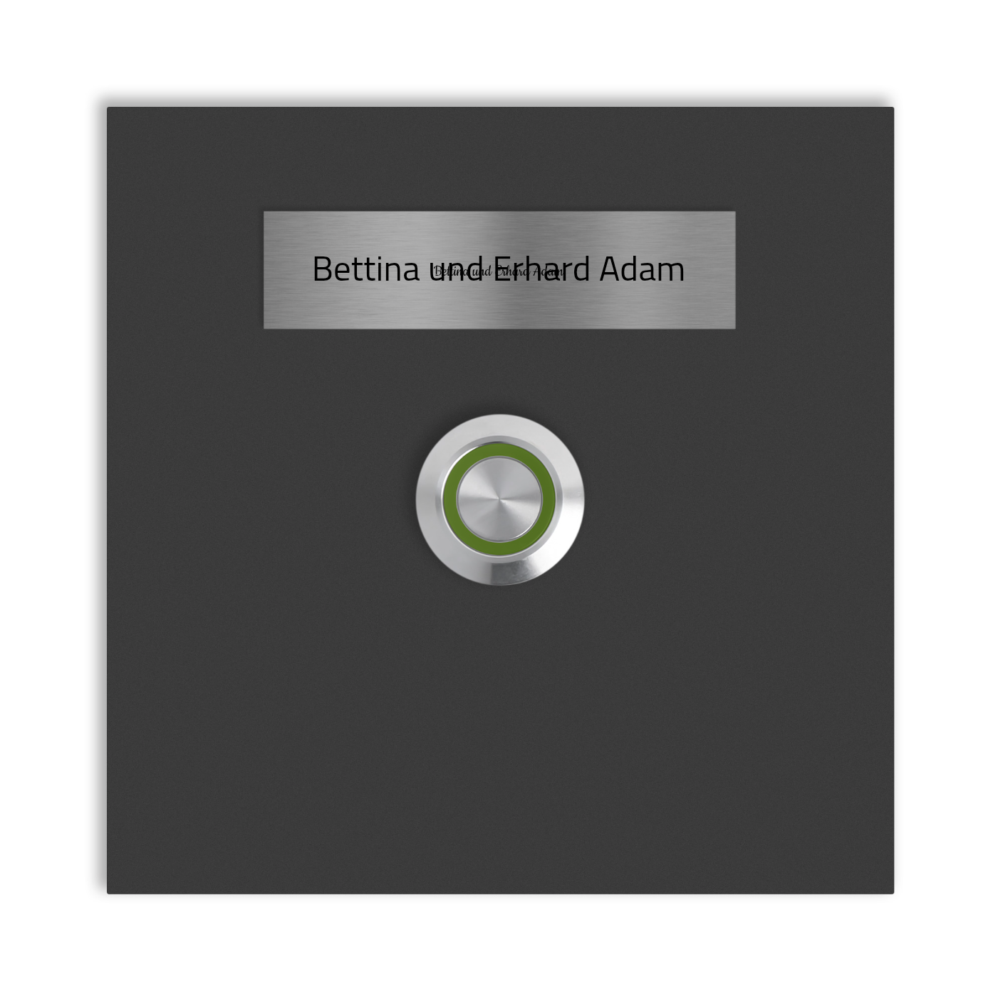 Bochum 10 x 10 cm Edelstahl (V2A) Türklingel - mit auswechselbaren Edelstahlschild zur Gravur - Anthrazit / Weiß - LED - Aufputz / Unterputz