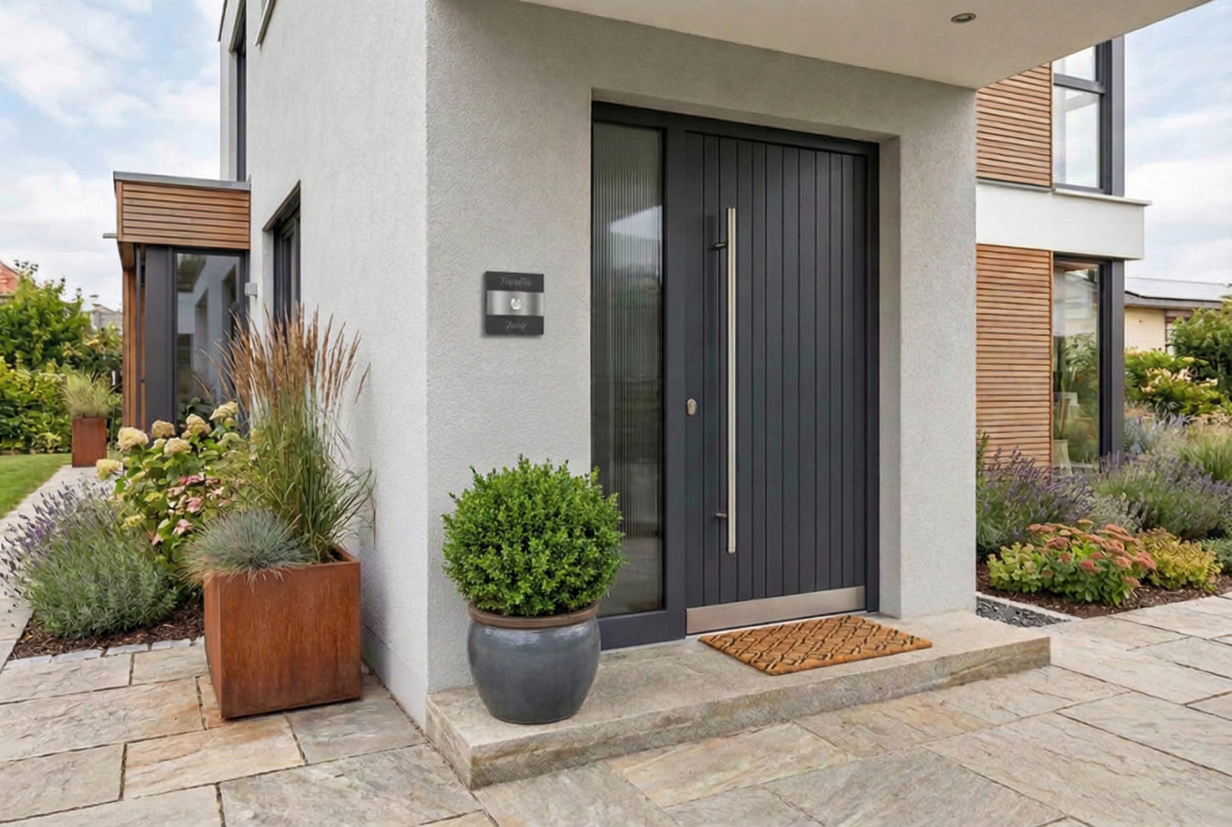 Verleihen Sie Ihrem Eingangsbereich eine einzigartige Note mit unserer hochwertigen Türklingel Bremen in moderner Bi-Color-Optik. Die perfekte Kombination aus pulverbeschichtetem Edelstahl und gebürsteten V2A-Streifen macht jede Klingel zum Unikat.