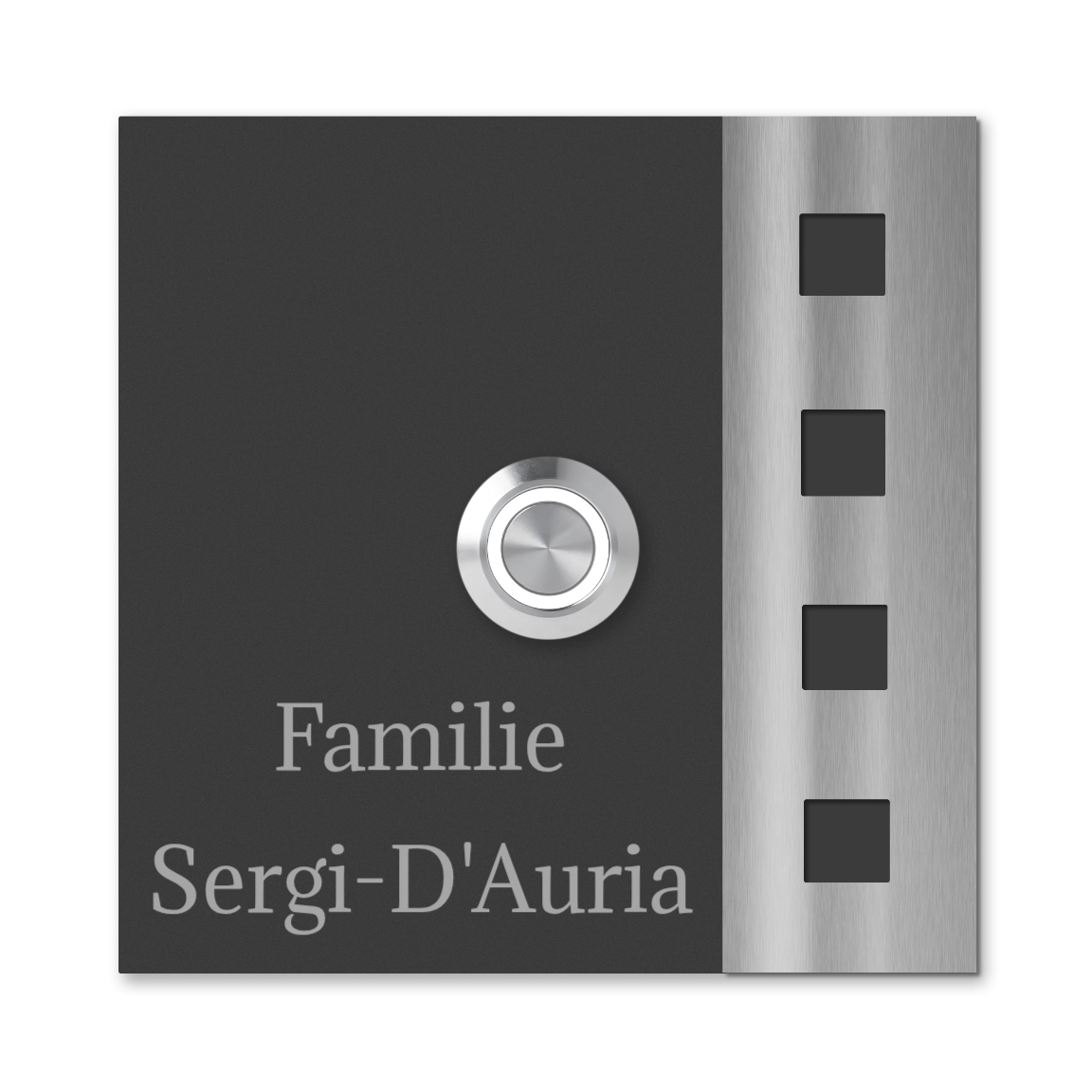 - Mit aufgesetztem Edelstahlstreifen gebürstet