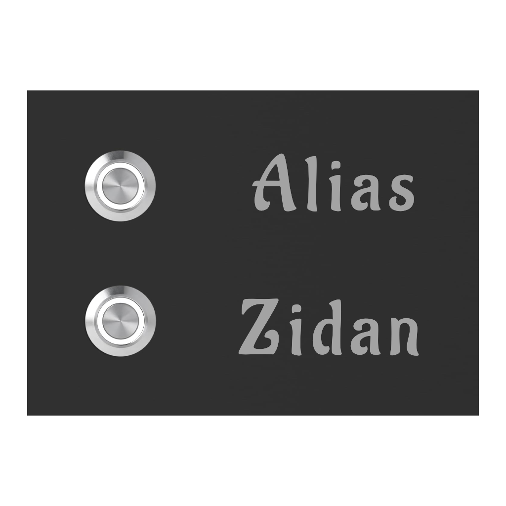 Frankfurt 14 x 10 cm Edelstahl (V2A) Türklingel - Zweifamilienhaus Klingel - mit Gravur - Anthrazit oder Weiß - LED - Aufputz / Unterputz