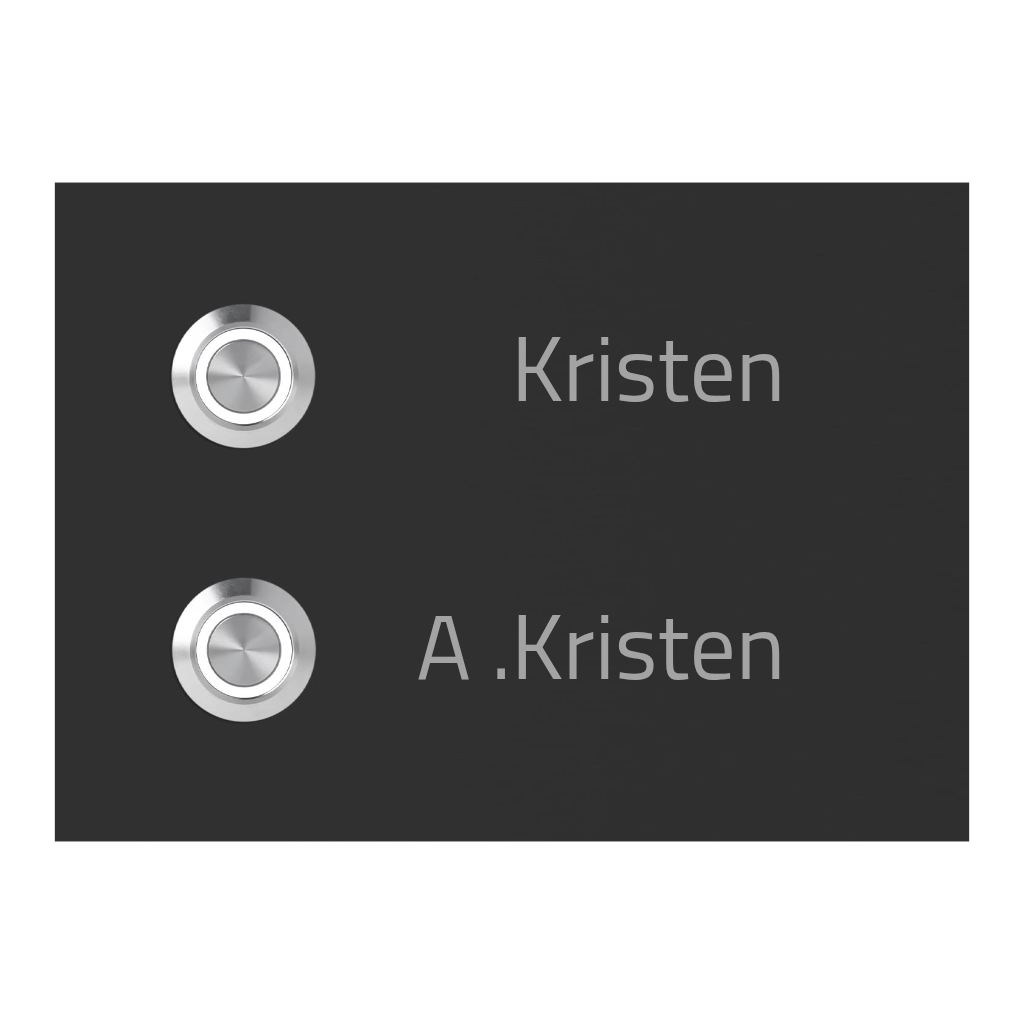 Frankfurt 14 x 10 cm Edelstahl (V2A) Türklingel - Zweifamilienhaus Klingel - mit Gravur - Anthrazit oder Weiß - LED - Aufputz / Unterputz