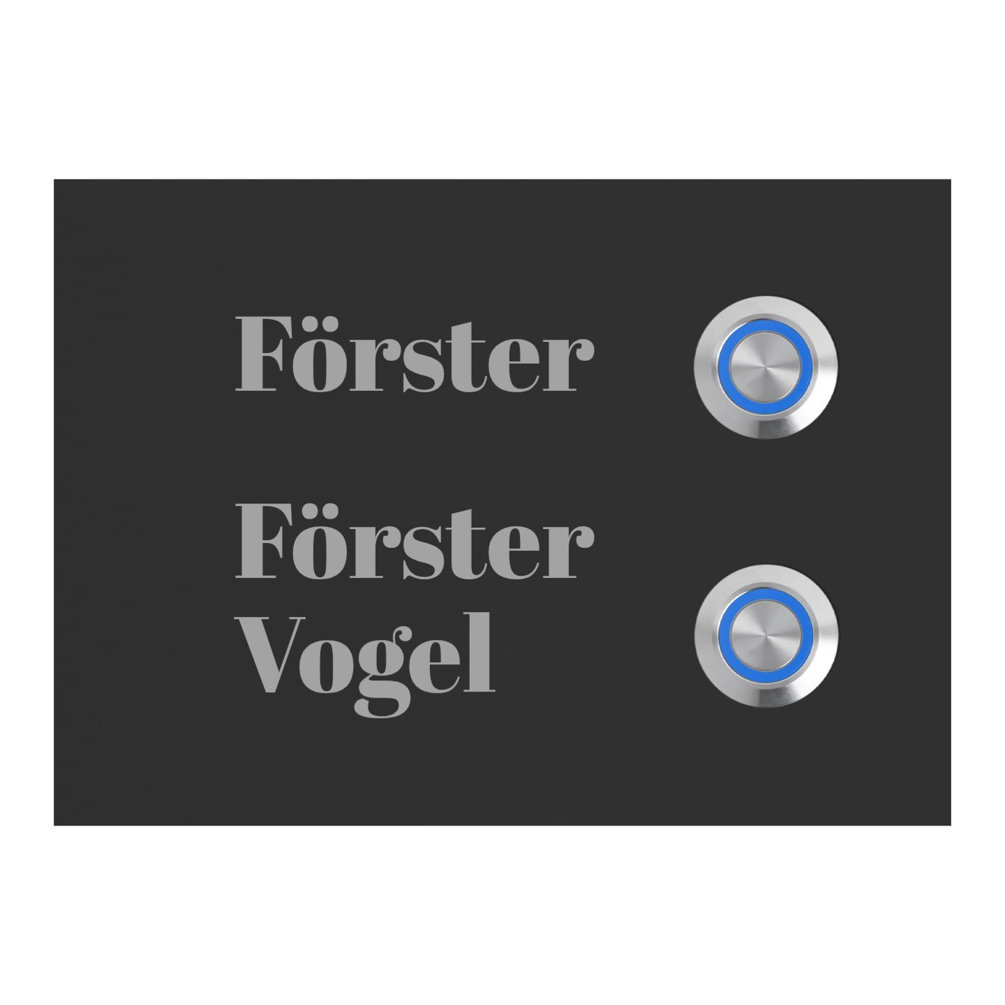 Frankfurt 14 x 10 cm Edelstahl (V2A) Türklingel - Zweifamilienhaus Klingel - mit Gravur - Anthrazit oder Weiß - LED - Aufputz / Unterputz