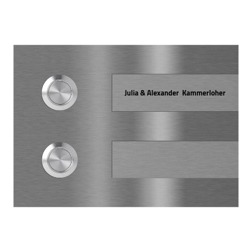 - Aufgesetztes Schriftfeld in Edelstahl gebürstet, auswechselbar