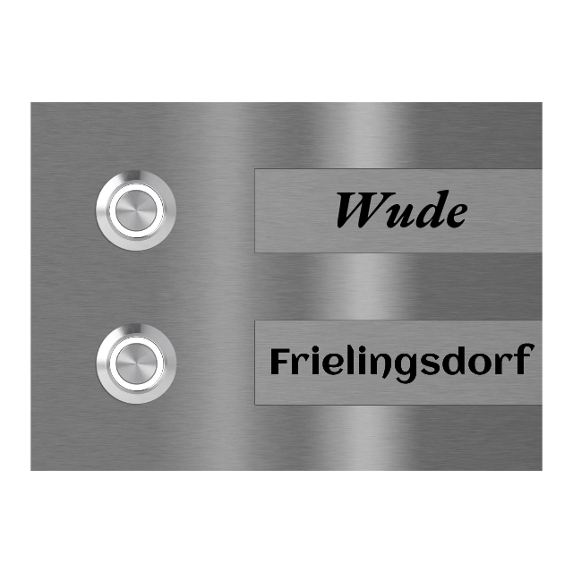 - Aufgesetztes Schriftfeld in Edelstahl gebürstet, auswechselbar