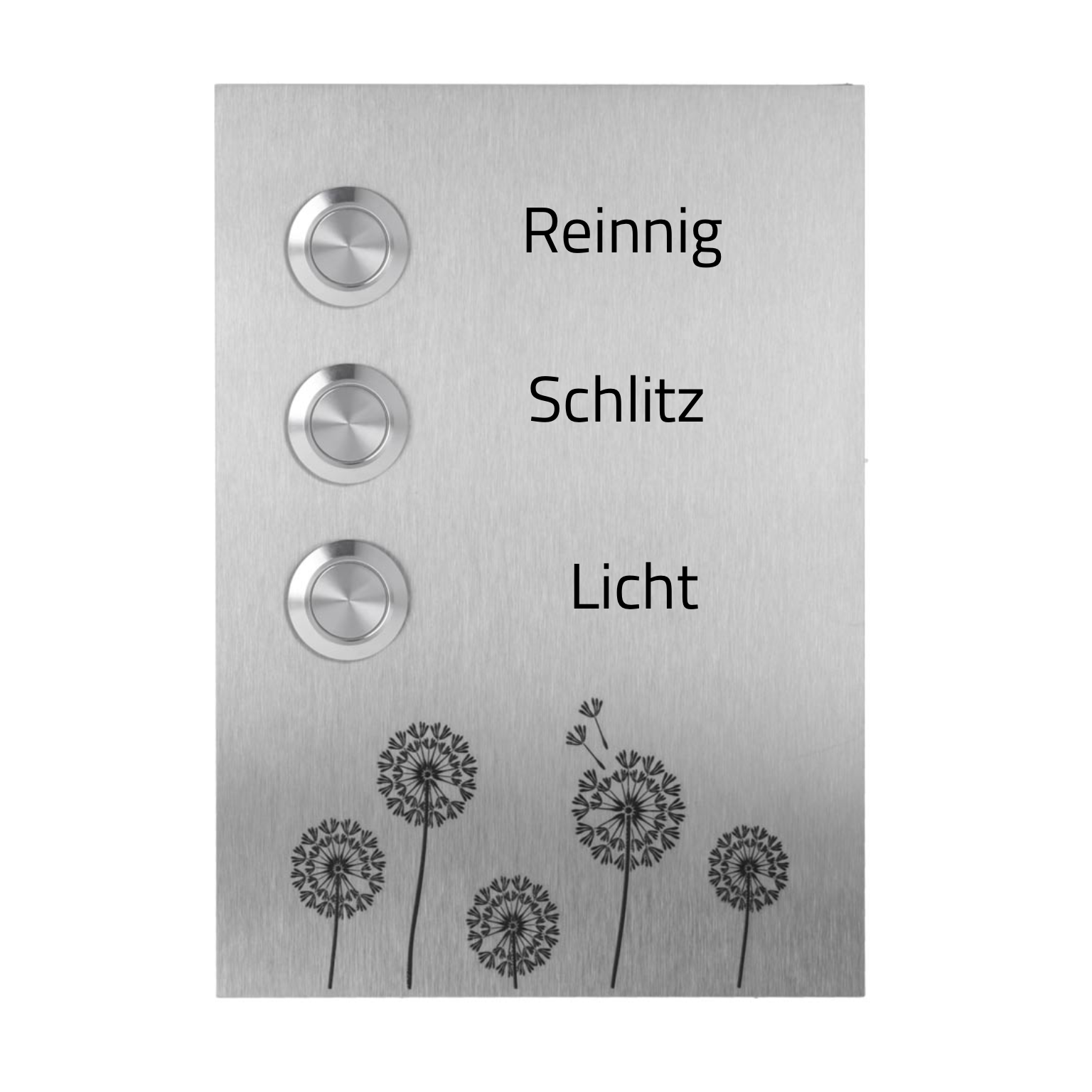 Entdecken Sie unsere Türklingel Kiel für Ihr Dreifamilienhaus. Sie überzeugt durch ihr modernes Rechteck-Design im Hochformat. Hier haben Sie viel Platz für Ihre persönliche Gestaltung und können Ihrer Kreativität freien Lauf lassen.