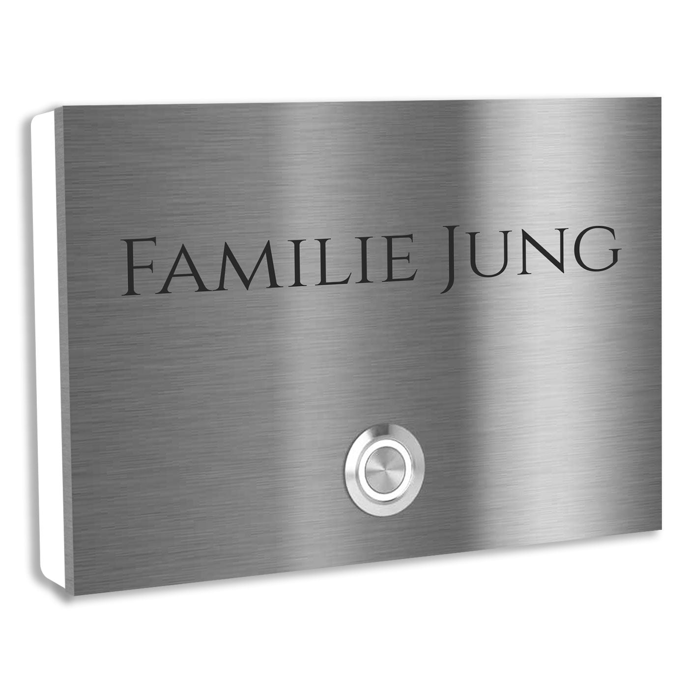 Taster Der 19 mm LED-Taster aus V2A Edelstahl garantiert die Sichtbarkeit Ihrer Haustürklingel auch bei ungünstigen Lichtverhältnissen und vermeidet damit das lästige Suchen nach einer Lichtquelle. Die LED Beleuchtung ist je nach Angebot in den Farben Orange, Blau, Grün, Rot oder Weiß erhältlich. Der Taster verfügt über Schraubkontakte (Unterputzvariante) oder Kabel mit Steckverbindern (Aufputzvariante) um ihn mit allen gängigen Haustürklingel-Anlagen mit 8 – 12 Volt Wechselstrom (AC) oder Gleichstrom (DC) verbinden zu können. Es werden nur LED-Taster aus witterungsbeständigem, rostfreiem Edelstahl verwendet die höchsten Anforderungen genügen. Nach IP67 Schutzstandard sind sie staub- und wasserdicht.