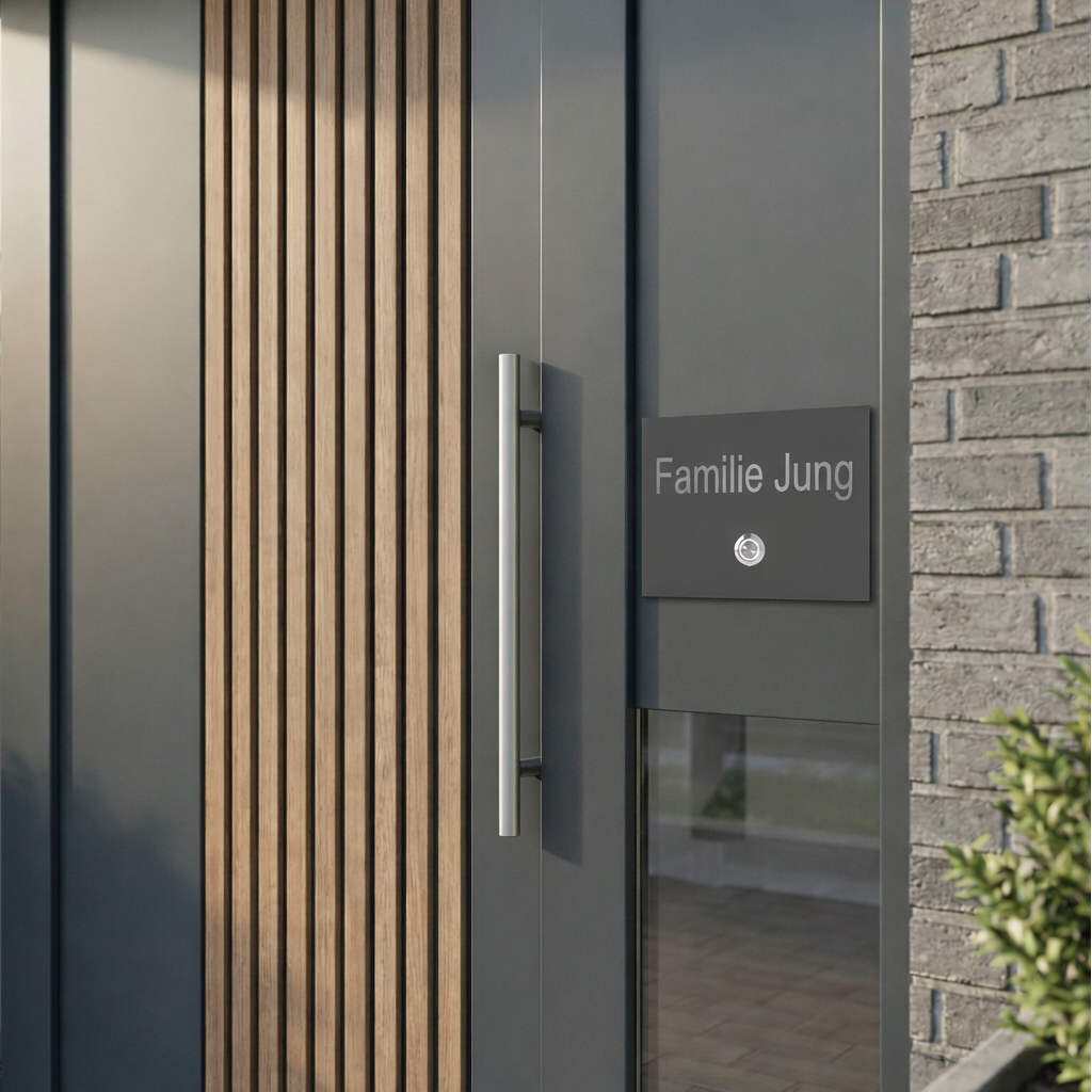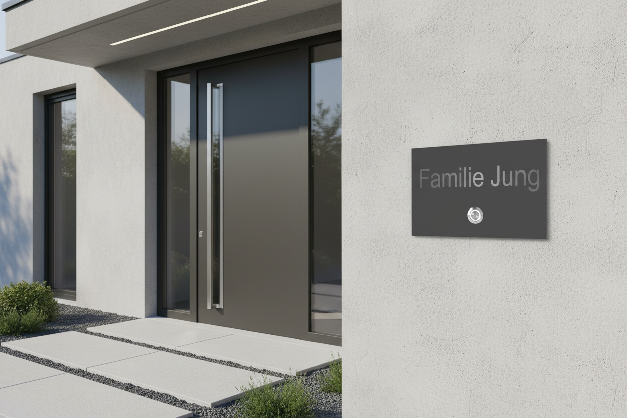 Verleihen Sie Ihrem Eingangsbereich eine persönliche Note mit dieser hochwertigen V2A Türklingel - wahlweise mit individueller Lasergravur oder kreativem UV-Druck gestaltet.