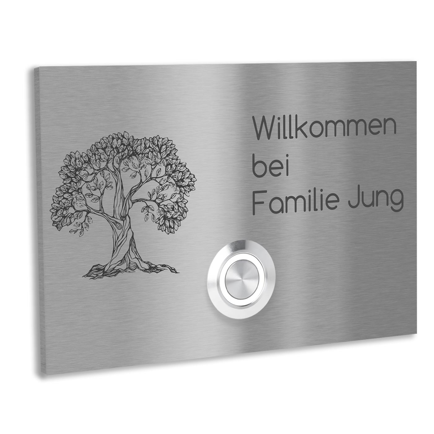 Hochwertige Türklingel aus rostfreiem V2A Edelstahl - langlebig, wetterfest und elegant. Das stilvolle Baum-Motiv verleiht Ihrem Eingang eine natürliche Note.