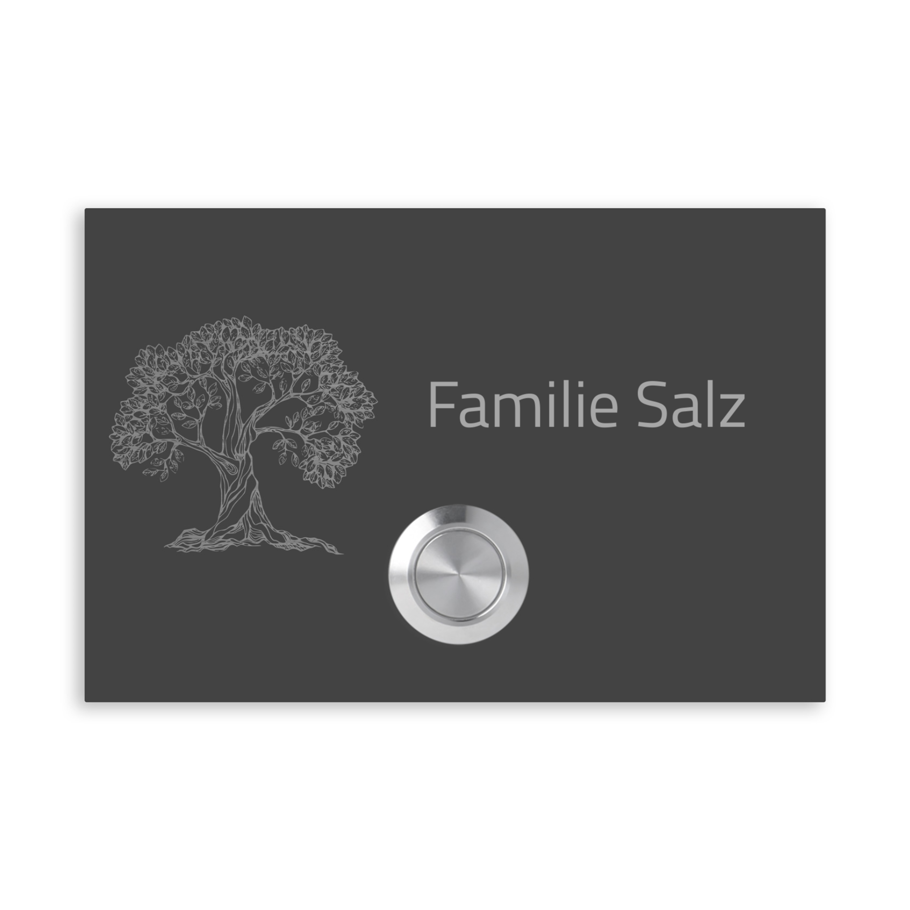 London 12 x 8 cm Edelstahl (V2A) Türklingel - "Baum" - mit Gravur - Anthrazit / Weiß / Edelstahl - LED -Aufputz / Unterputz