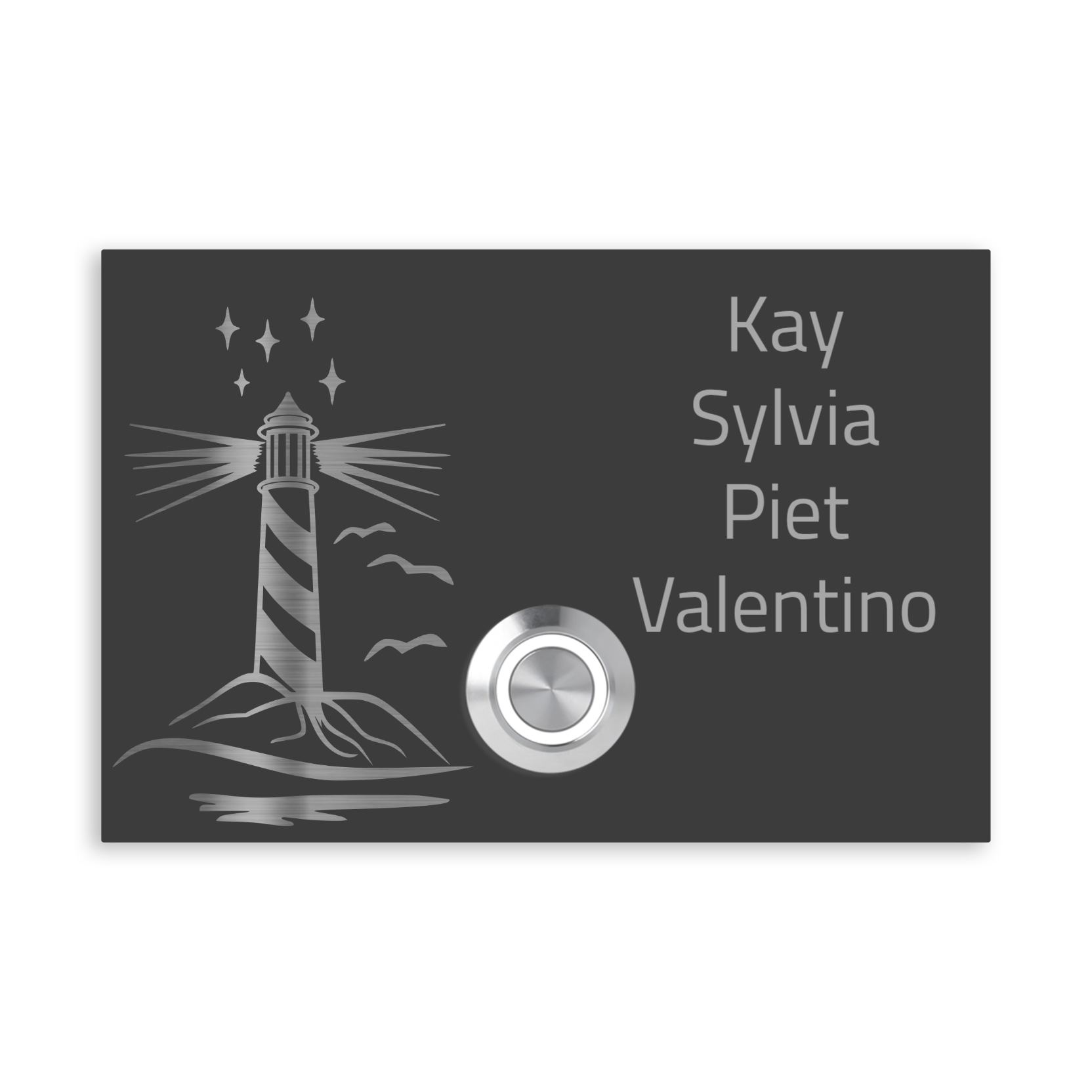 London 12 x 8 cm Edelstahl (V2A) Türklingel - "Leuchtturm" - mit Gravur - Anthrazit / Weiß / Edelstahl - LED - Aufputz / Unterputz