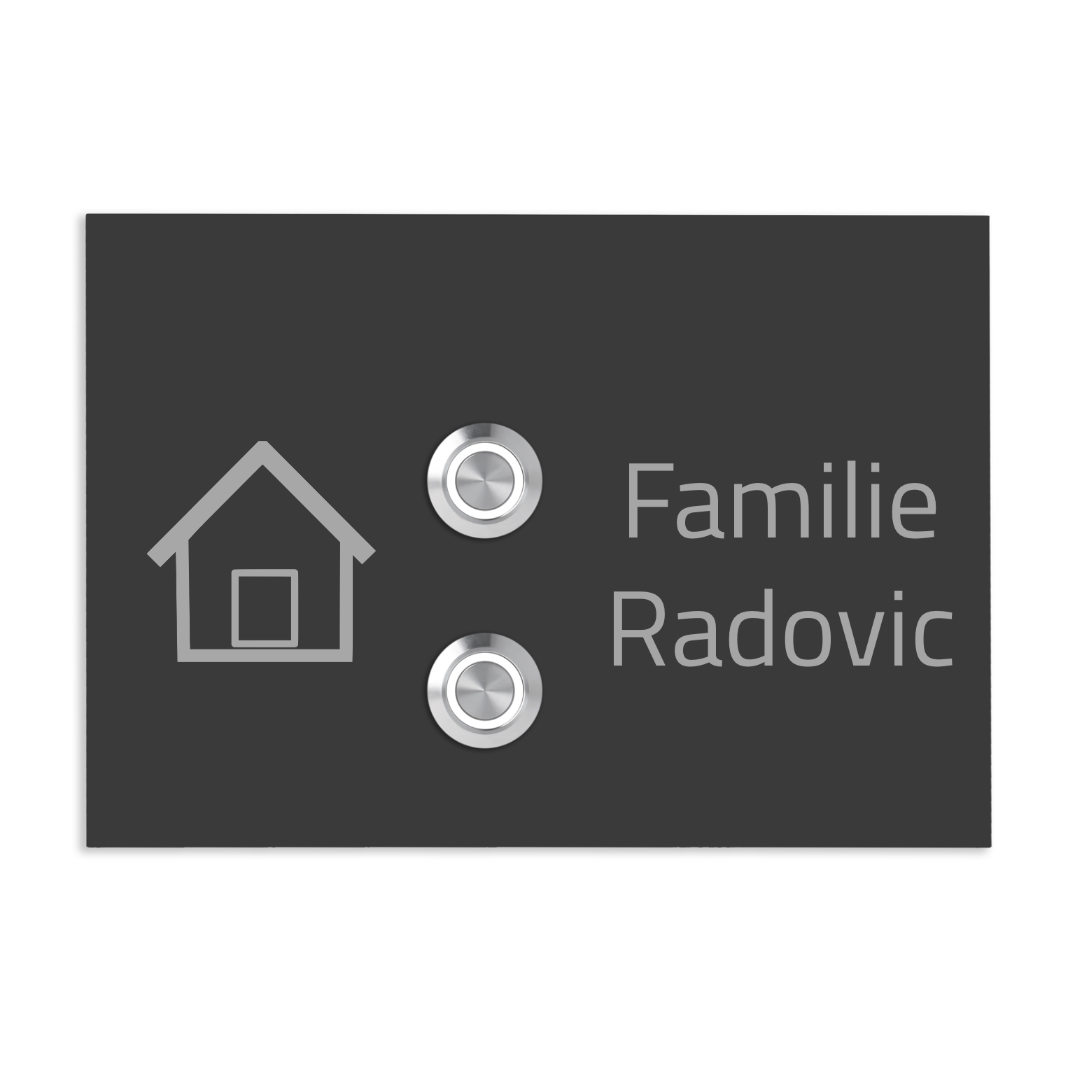Lübeck 17 x 12 cm Edelstahl (V2A) Türklingel für Zweifamilienhäuser - mit Gravur - Anthrazit / Weiß pulverbeschichtet - LED - Aufputz / Unterputz
