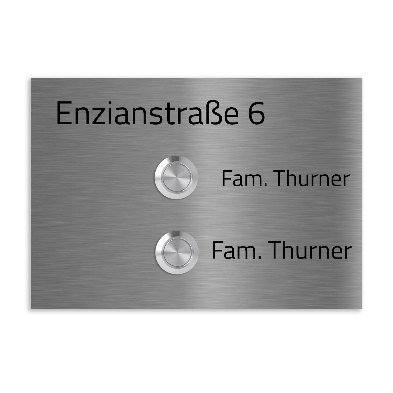 Lübeck 17 x 12 cm Edelstahl (V2A) Türklingel für Zweifamilienhäuser - mit Gravur - Anthrazit / Weiß pulverbeschichtet - LED - Aufputz / Unterputz