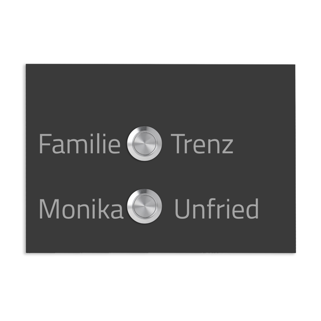 Lübeck 17 x 12 cm Edelstahl (V2A) Türklingel für Zweifamilienhäuser - mit Gravur - Anthrazit / Weiß pulverbeschichtet - LED - Aufputz / Unterputz