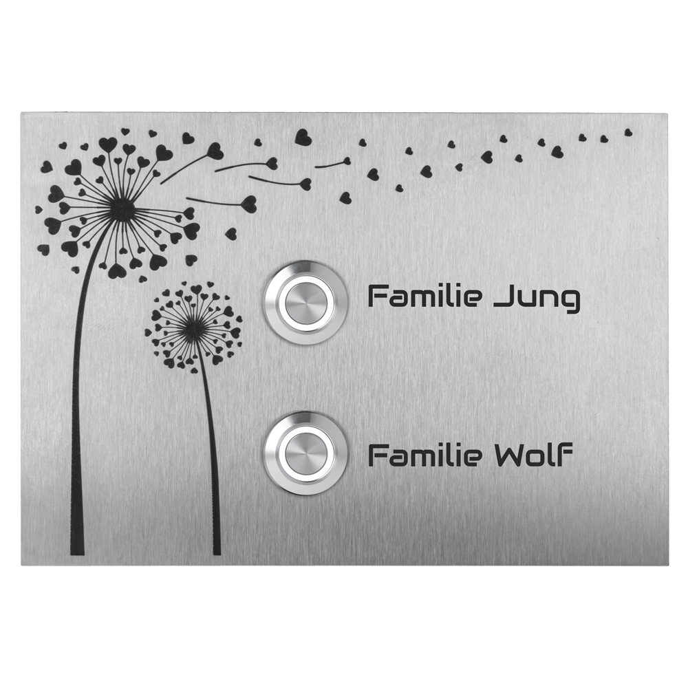 Lübeck 17 x 12 cm Edelstahl (V2A) Türklingel für Zweifamilienhäuser - mit Gravur - LED - Aufputz / Unterputz