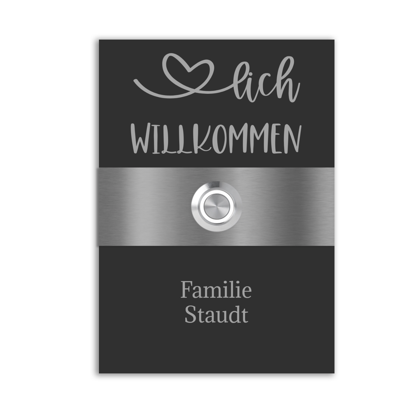 Philadelphia 12 x 17 cm Edelstahl (V2A) Türklingel - mit Gravur - Anthrazit / Weiß pulverbeschichtet und Edelstahl gebürstet - LED - Aufputz / Unterputz