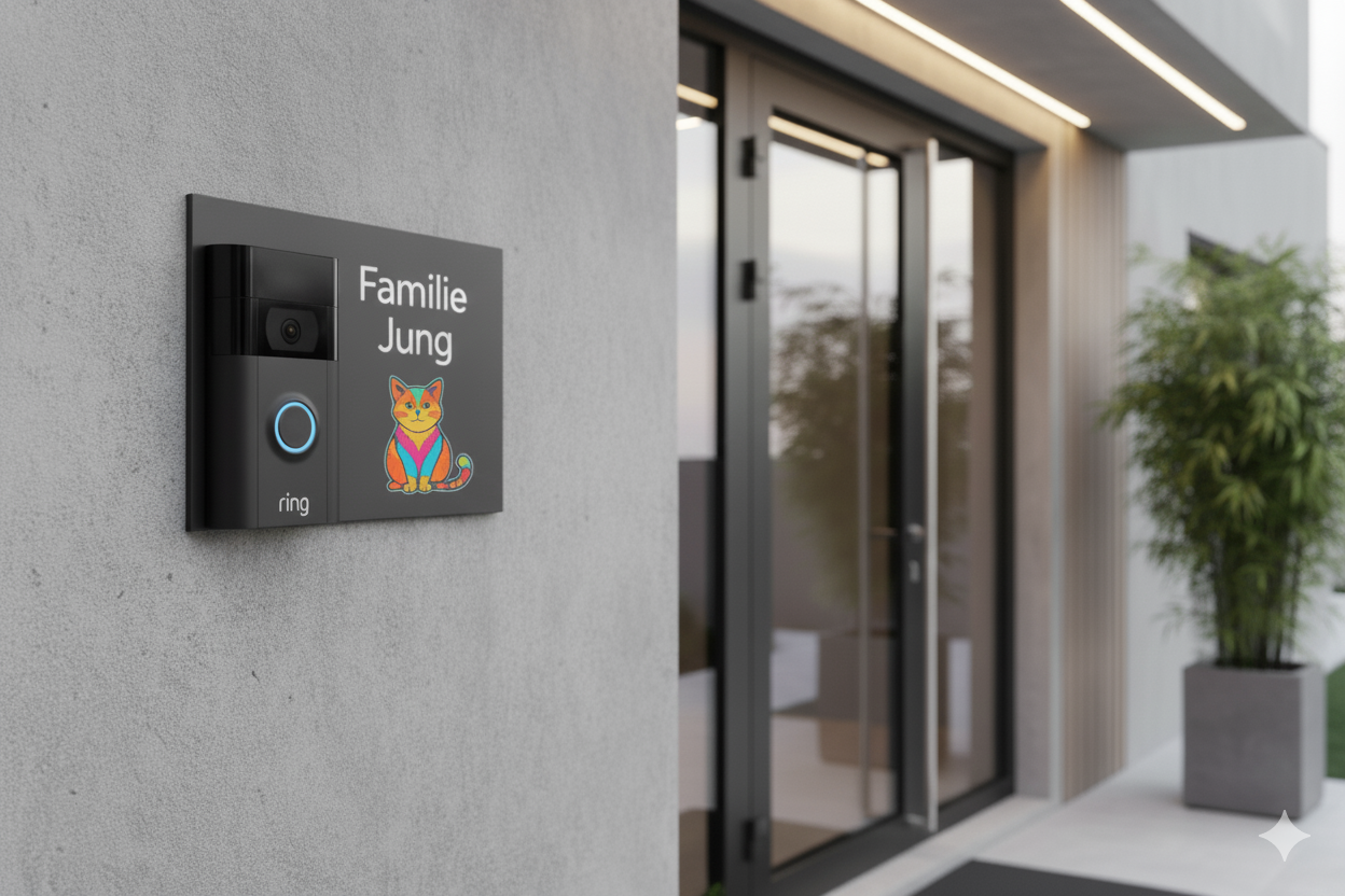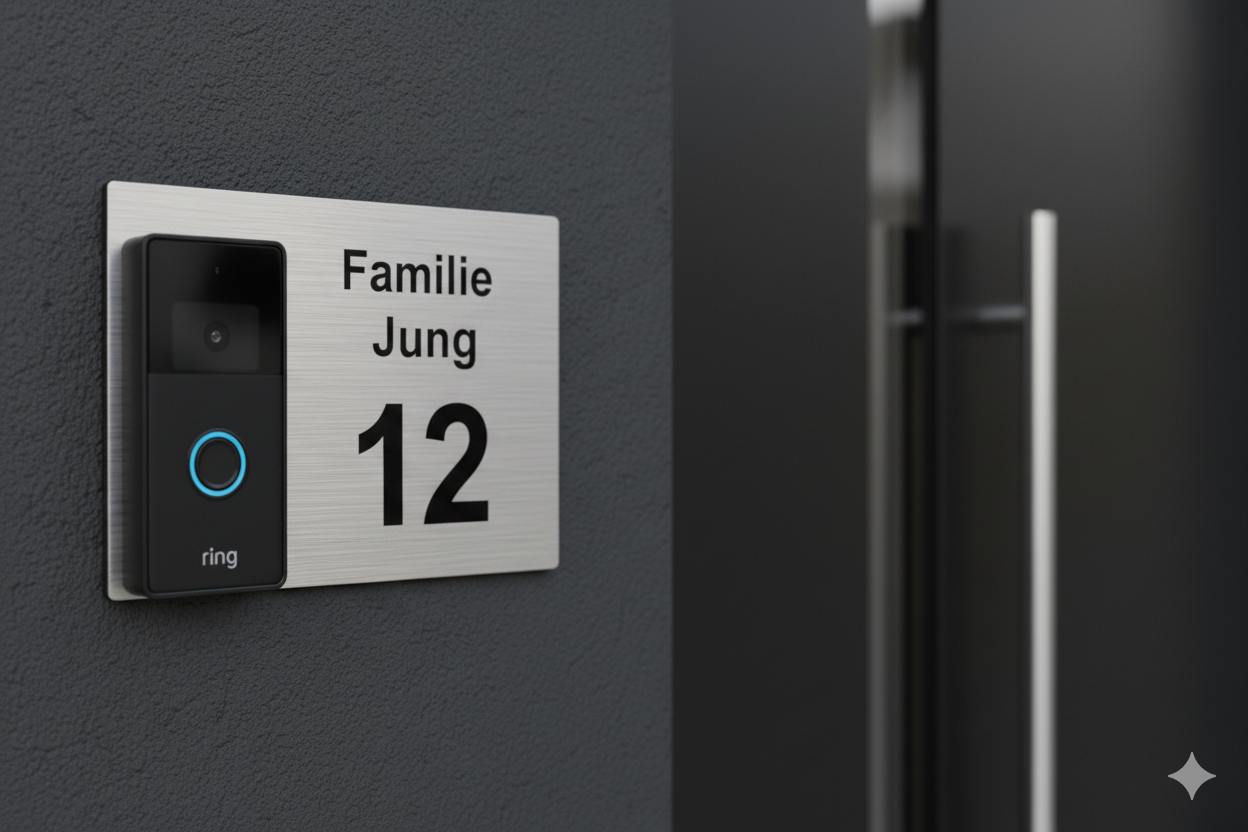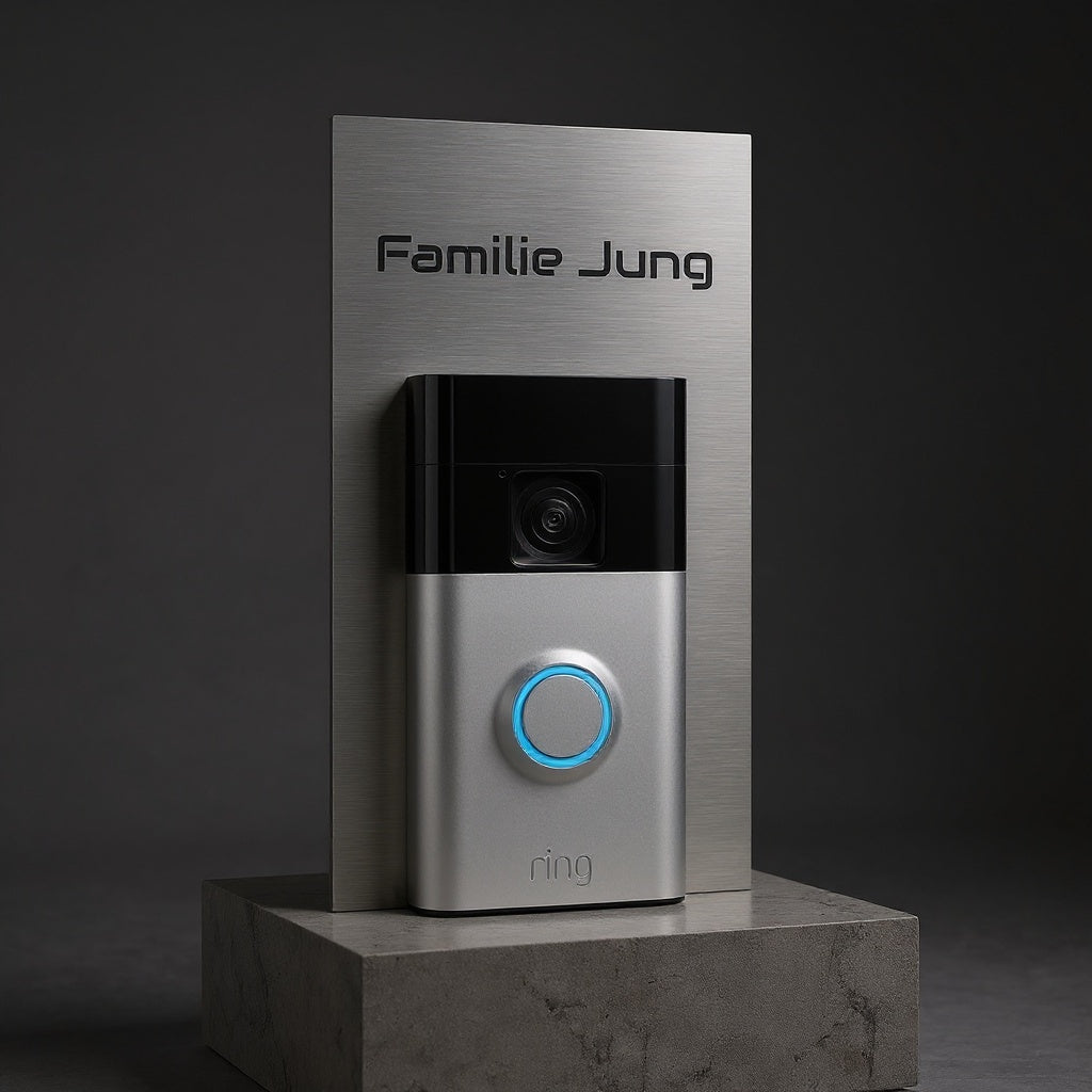 Unser V2A Edelstahl Türschild bietet nicht nur optimalen Schutz für Ihre Ring Videotürklingel, sondern verleiht Ihrem Eingangsbereich auch eine elegante und moderne Optik. Mit wahlweiser Lasergravur oder UV-Druck können Sie Ihr Türschild individuell gestalten - ob mit Namen, Hausnummer oder Logo.