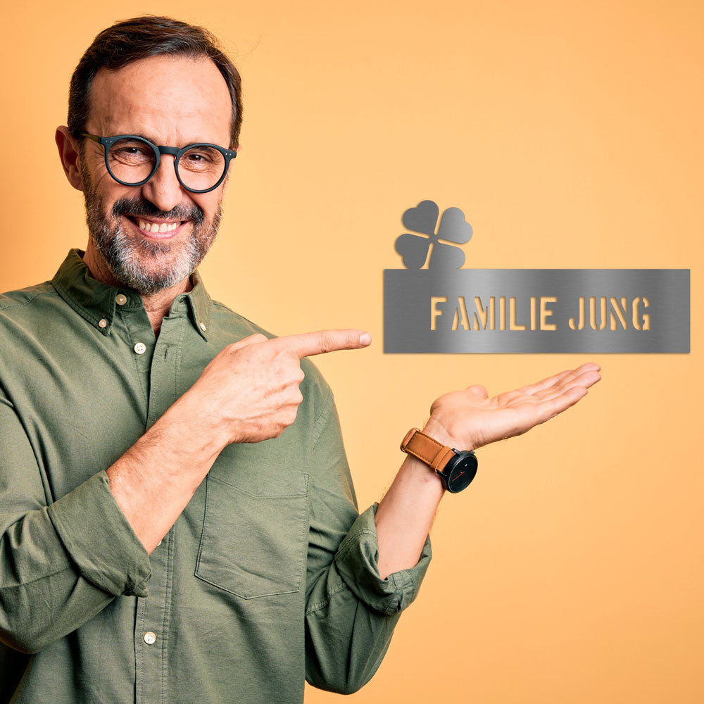 Edelstahl Türschild Kleeblatt personalisierbar – Text ausgelasert
