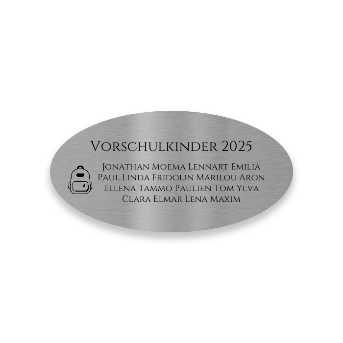 - Ovales Edelstahlschild mit individuell personalisierbarer Gravur
