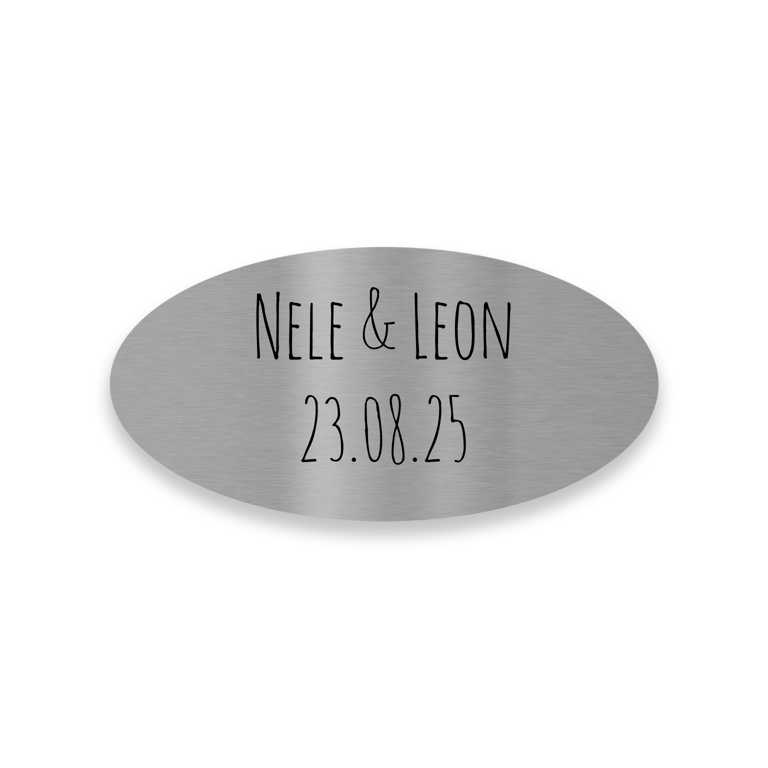 - Ovales Edelstahlschild mit individuell personalisierbarer Gravur