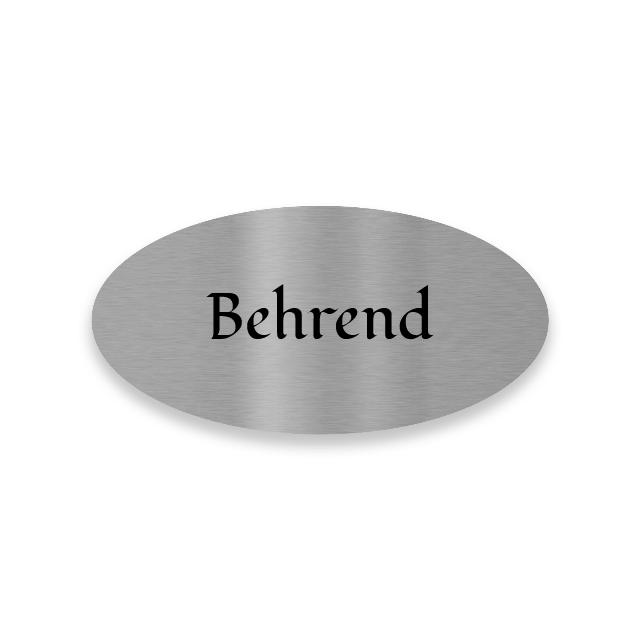 Edelstahl Türschild mit Gravur. Selbstklebend oder mit Bohrlöchern. Oval 8x4 cm oder 10x5 cm