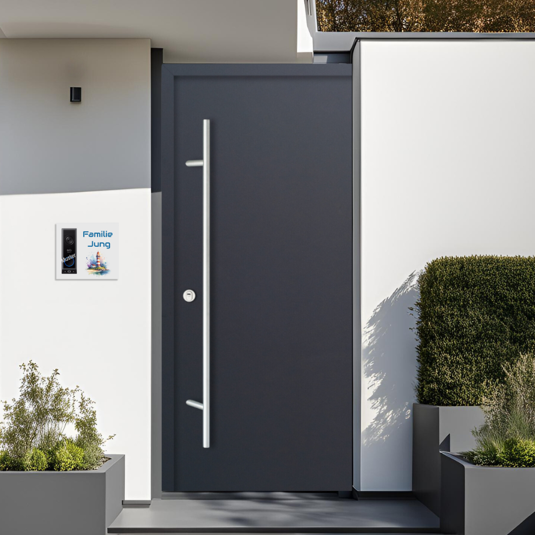 Verleihen Sie Ihrer Eufy E340 Überwachungskamera einen eleganten und professionellen Look mit unserem hochwertigen Dekorschild aus V2A Edelstahl.