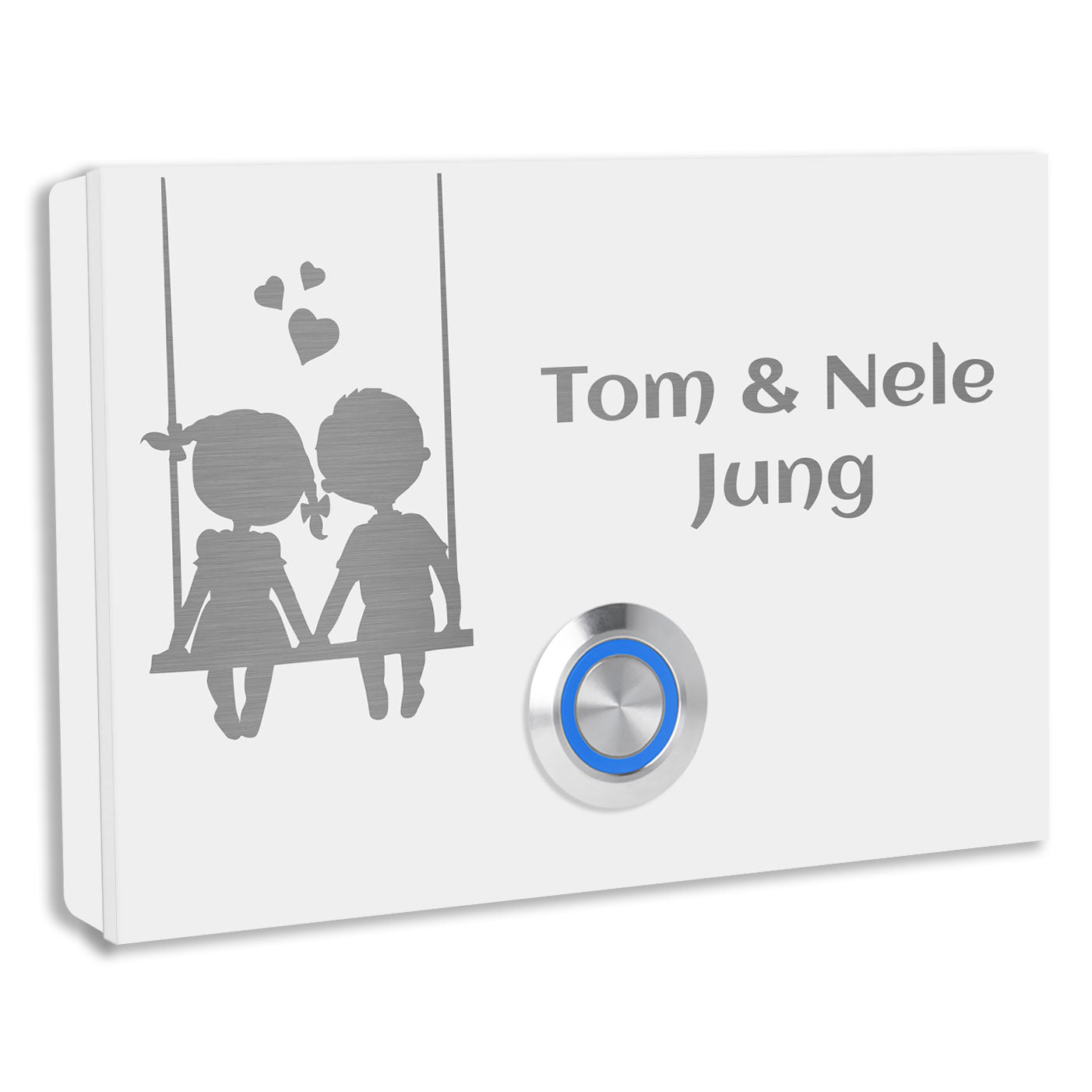 Unsere Türklingel London ist ein zeitloser Klassiker im Rechteckformat und ein Blickfang an jeder Haustür. Das schlichte und elegante Design passt perfekt zu jeder Art von Hausarchitektur und verleiht Ihrem Eingangsbereich einen Hauch von Eleganz und Stil. Sie kann einfach und unkompliziert montiert werden. Konfigurieren Sie Ihr individuelles Model ganz nach Ihrer Vorstellung.