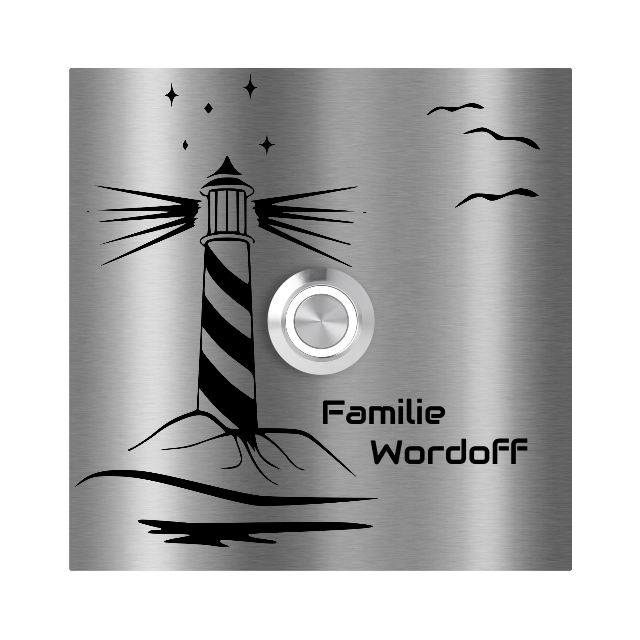 Bochum 10 x 10 cm Edelstahl (V2A) Türklingel - Motiv "Leuchtturm" - mit Gravur - Edelstahl gebürstet - LED - Aufputz / Unterputz