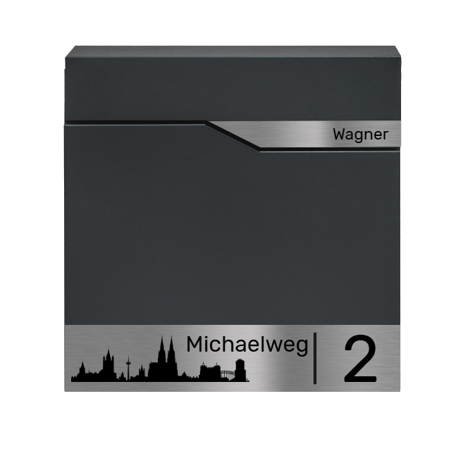 Moderner Briefkasten Bochum mit Zeitungsfach - Weiß oder anthrazit pulverbeschichtet – durch aufgesetzte Edelstahlschilder individuell personalisierbar