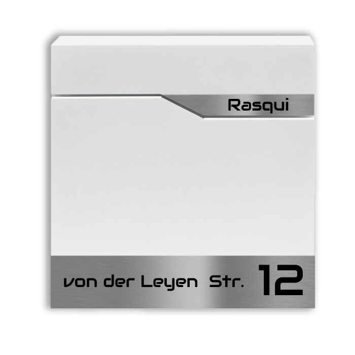 Moderner Briefkasten Bochum mit Zeitungsfach - Weiß oder anthrazit pulverbeschichtet – durch aufgesetzte Edelstahlschilder individuell personalisierbar