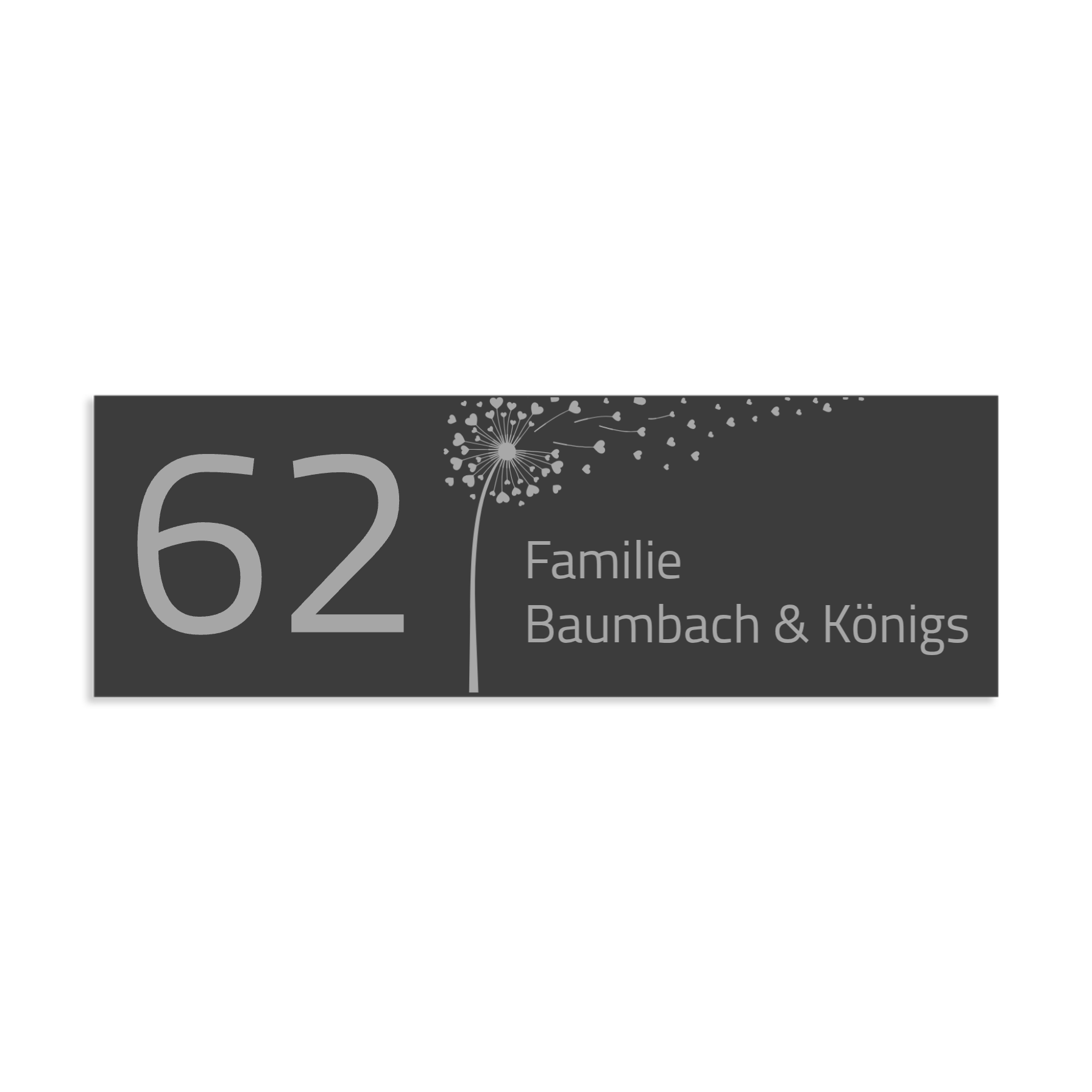 Farbige Edelstahlschilder in verschiedenen Größen. Individuell personalisierbar 40 Schriftarten über 200 Motive.