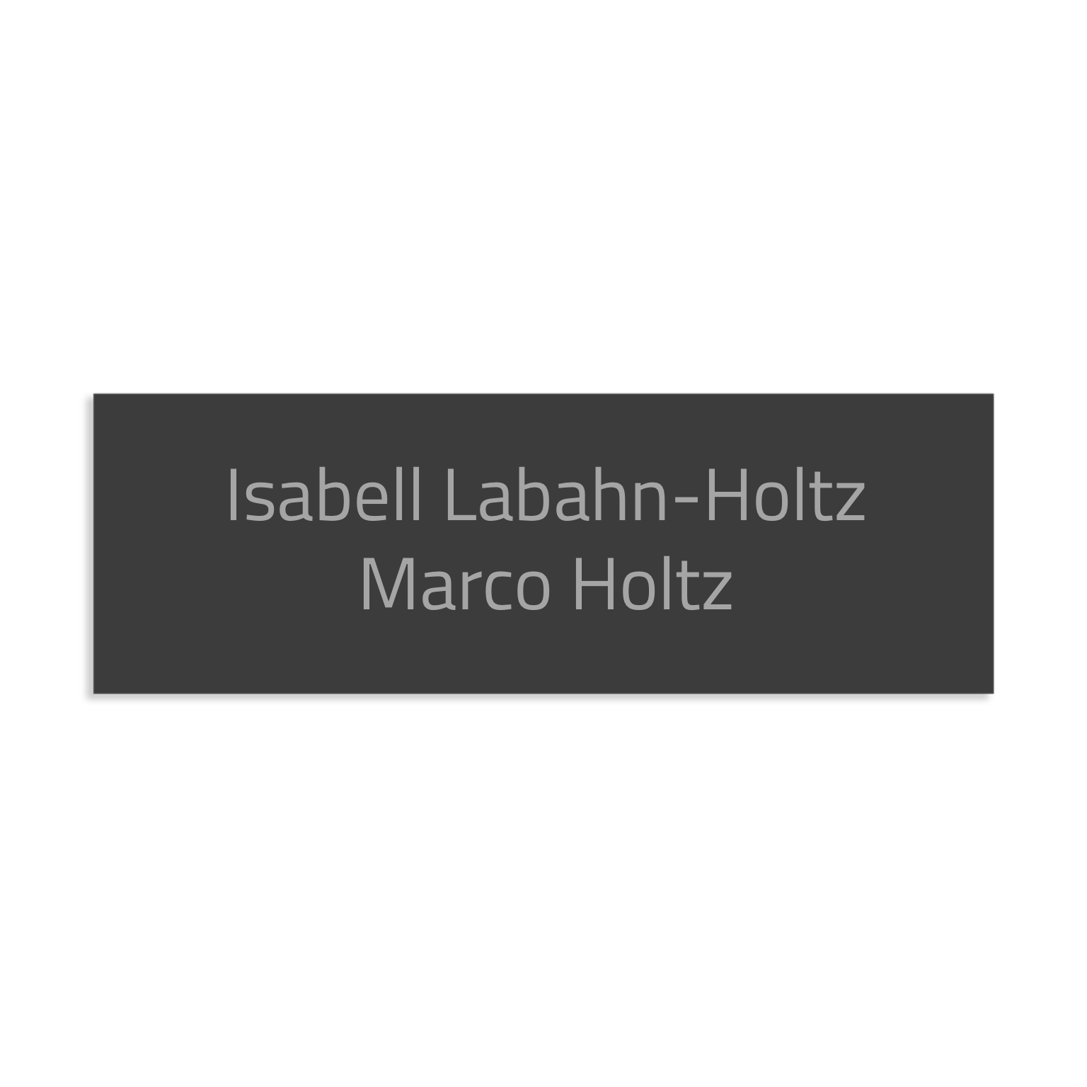 Farbige Edelstahlschilder in verschiedenen Größen. Individuell personalisierbar 40 Schriftarten über 200 Motive.