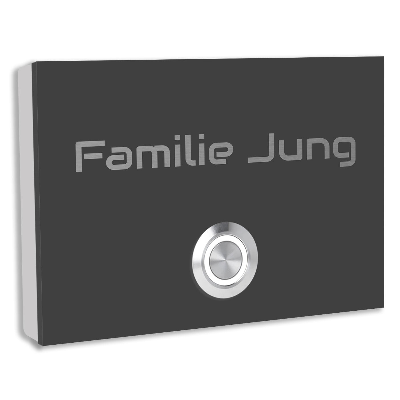 London 12 x 8 cm Edelstahl (V2A) Türklingel - mit Gravur oder farbigem UV Druck- Anthrazit oder Weiß pulverbeschichtet oder Edelstahl gebürstet - LED - Aufputz / Unterputz