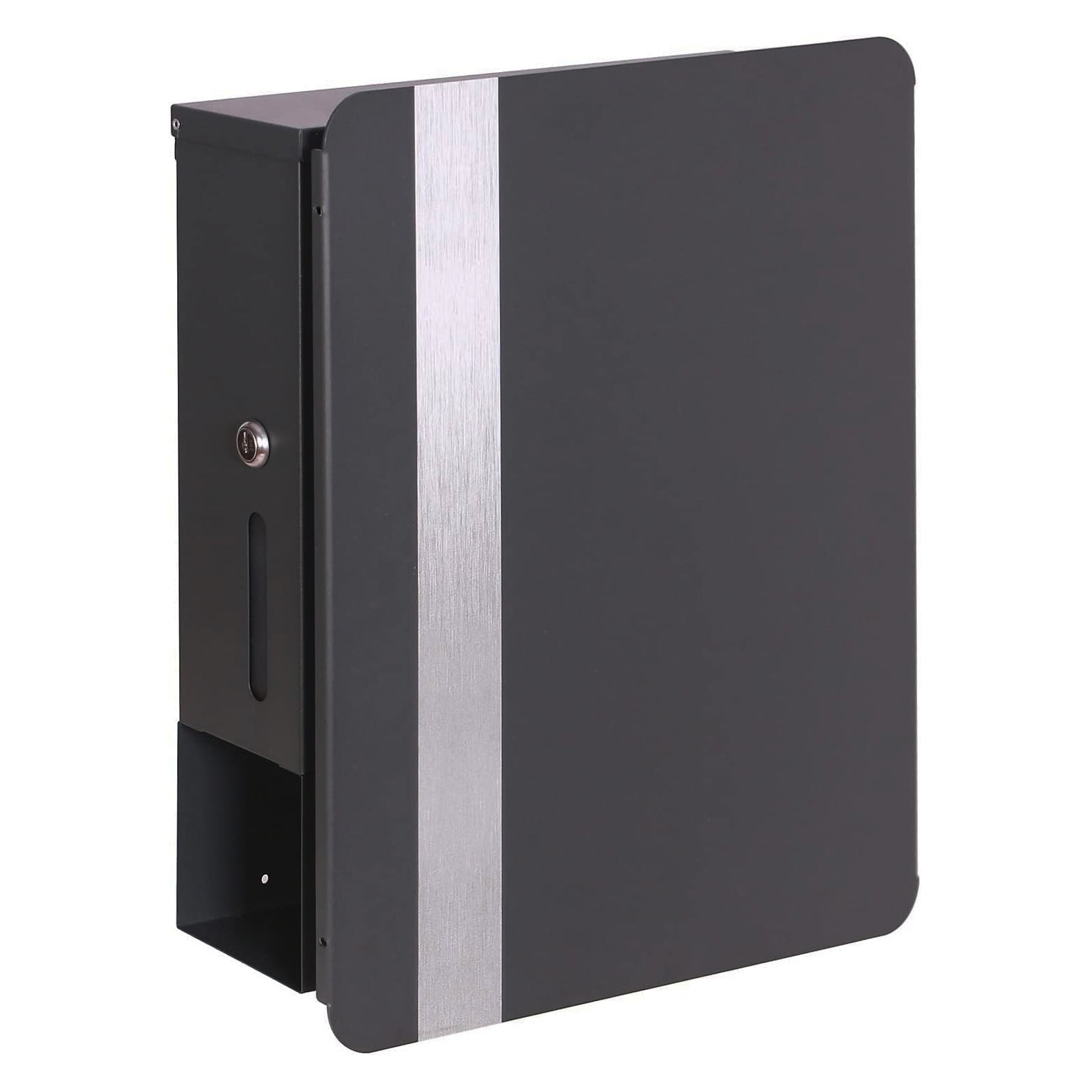 - Großer anthrazitfarbener Briefkasten in moderner Optik mit Dekostreifen