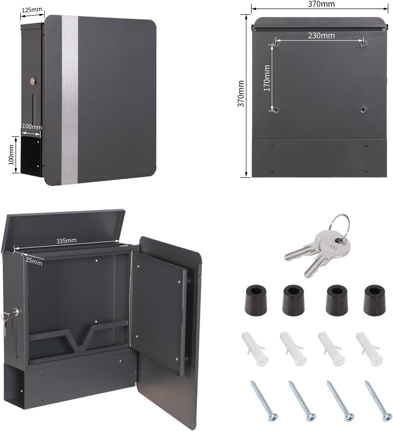 - Breiter Einwurfschlitz, wasserdichte Postklappe und geräumiges Zeitungsfach
