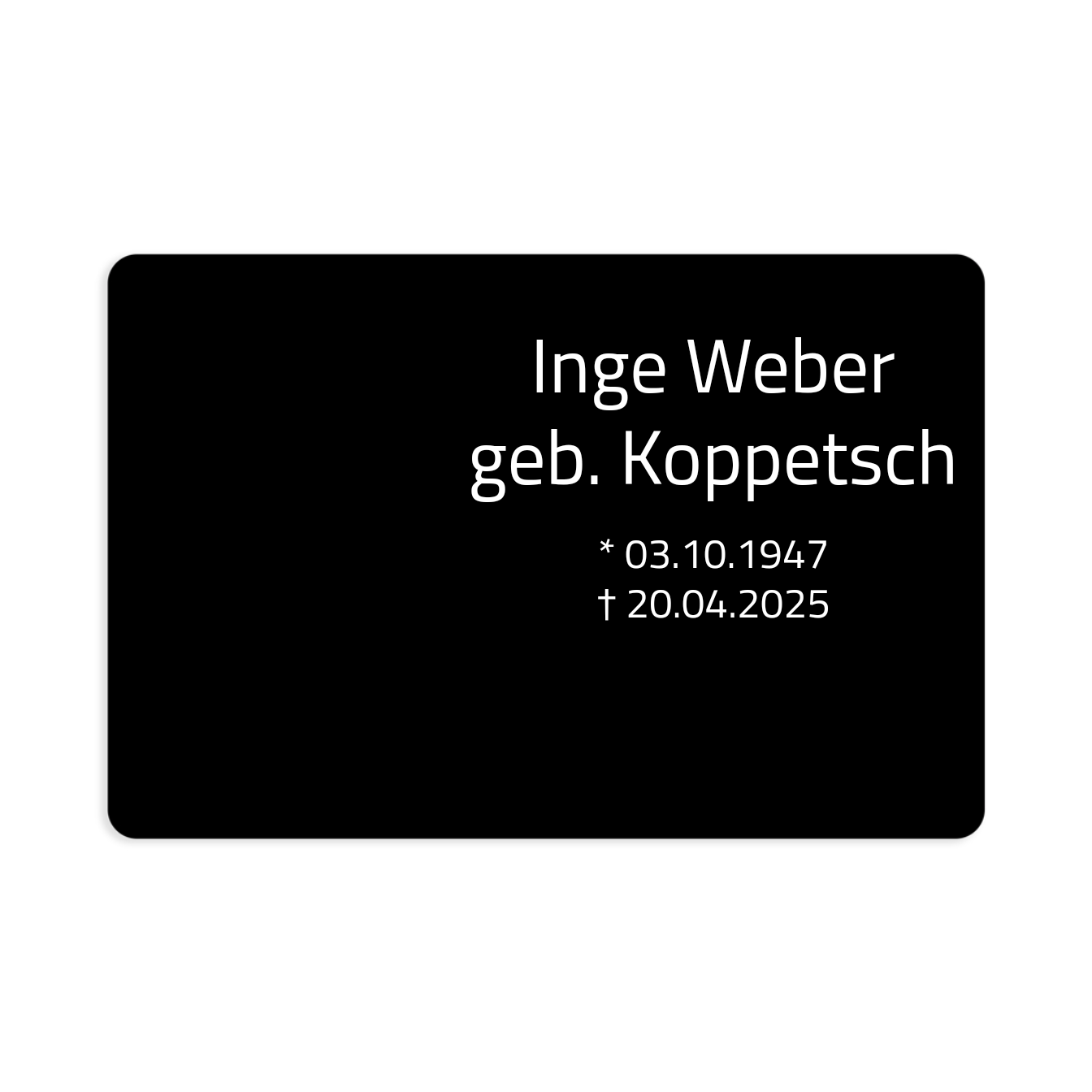 Individuelle Gedenktafel aus V2A Edelstahl – hochwertig pulverbeschichtet